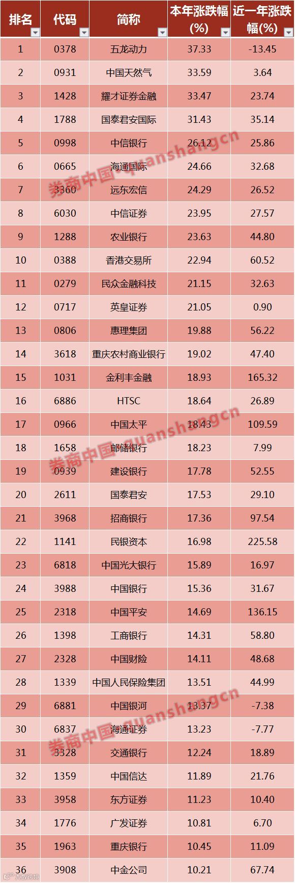 从恒生金融业指数成分股中可以发现,内地金融股承担了整个板块的上涨重任,国泰君安国际、中信银行、中信证券、农业银行等涨幅均超过了20%。