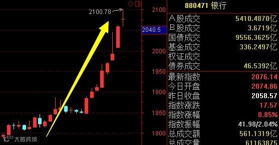 “大象”起舞的景象许久未见。建设银行年后大涨18.36%,农业银行大涨16.71%,工商银行大涨14.84%。