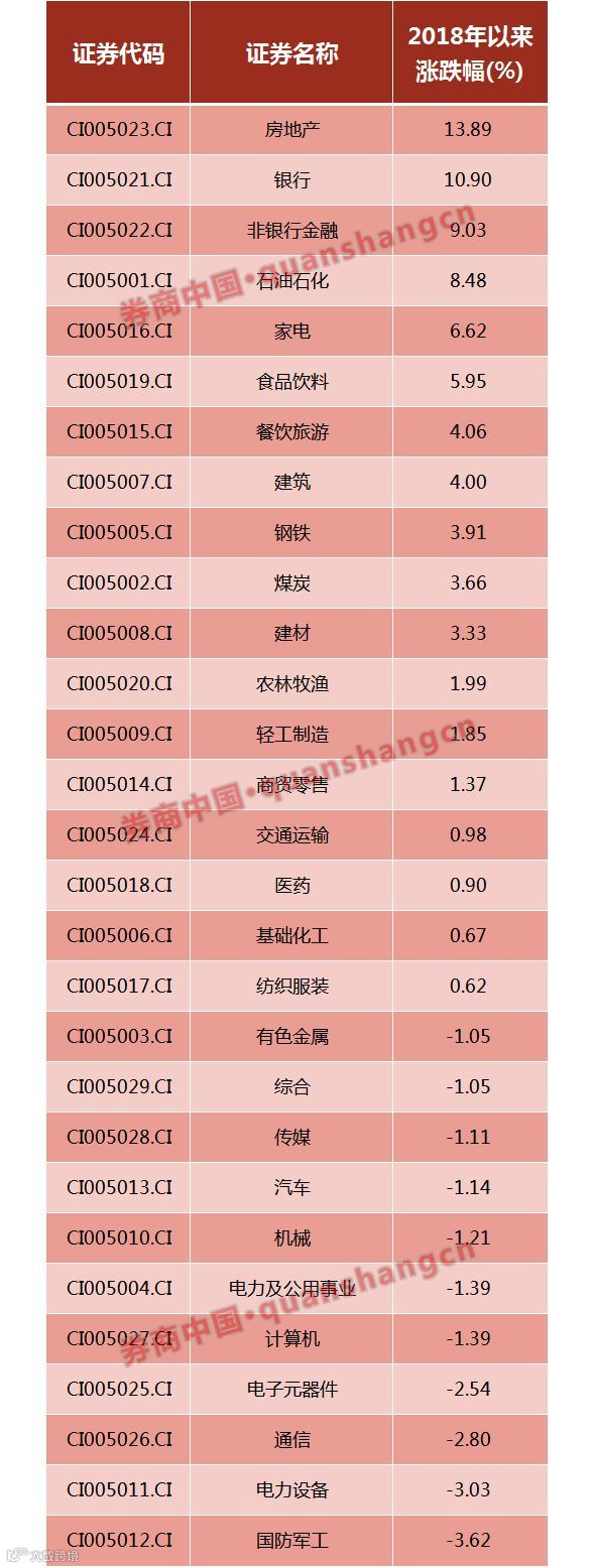 板块涨幅方面,年初以来涨幅最好的三大板块分别是房地产、银行、非银行金融,涨幅为13.89%、10.90%、9.03%。