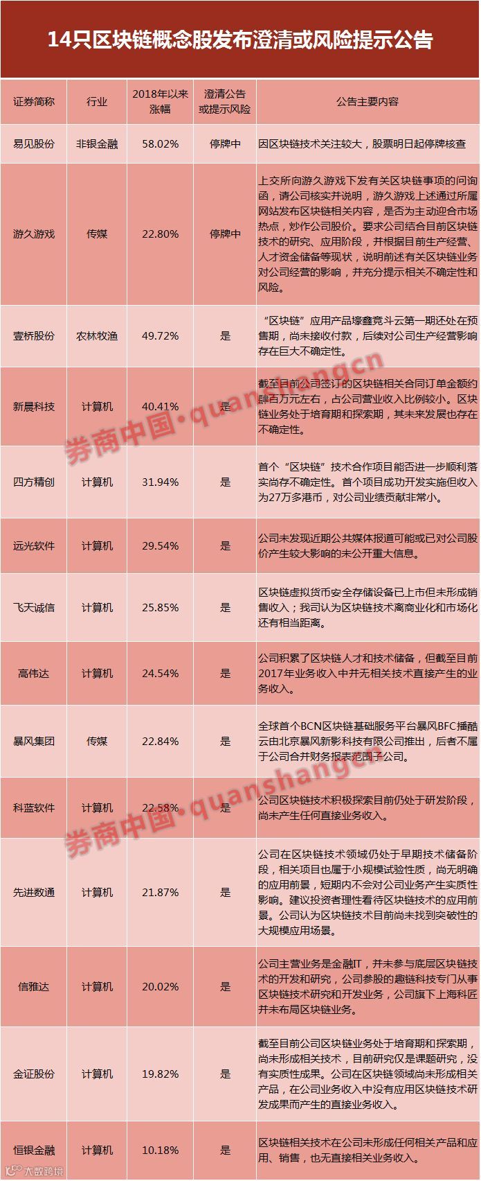 14概念股紧急澄清,多家喊“区块链没挣钱”