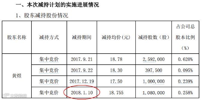 根据减持数据,黄煜在2017年12月19日减持了100万股,减持均价为17.5元,最后一次减持发生在1月10日、共减持108万股,减持均价为18.755元,估算减持市值达到2025.54万元。