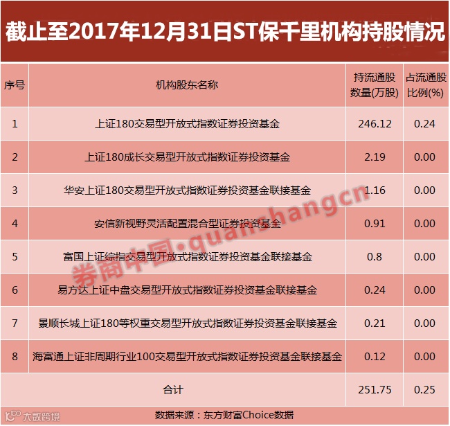 数据显示,仍有多家公募基金被动持有ST保千里,这些产品多为指数型产品。