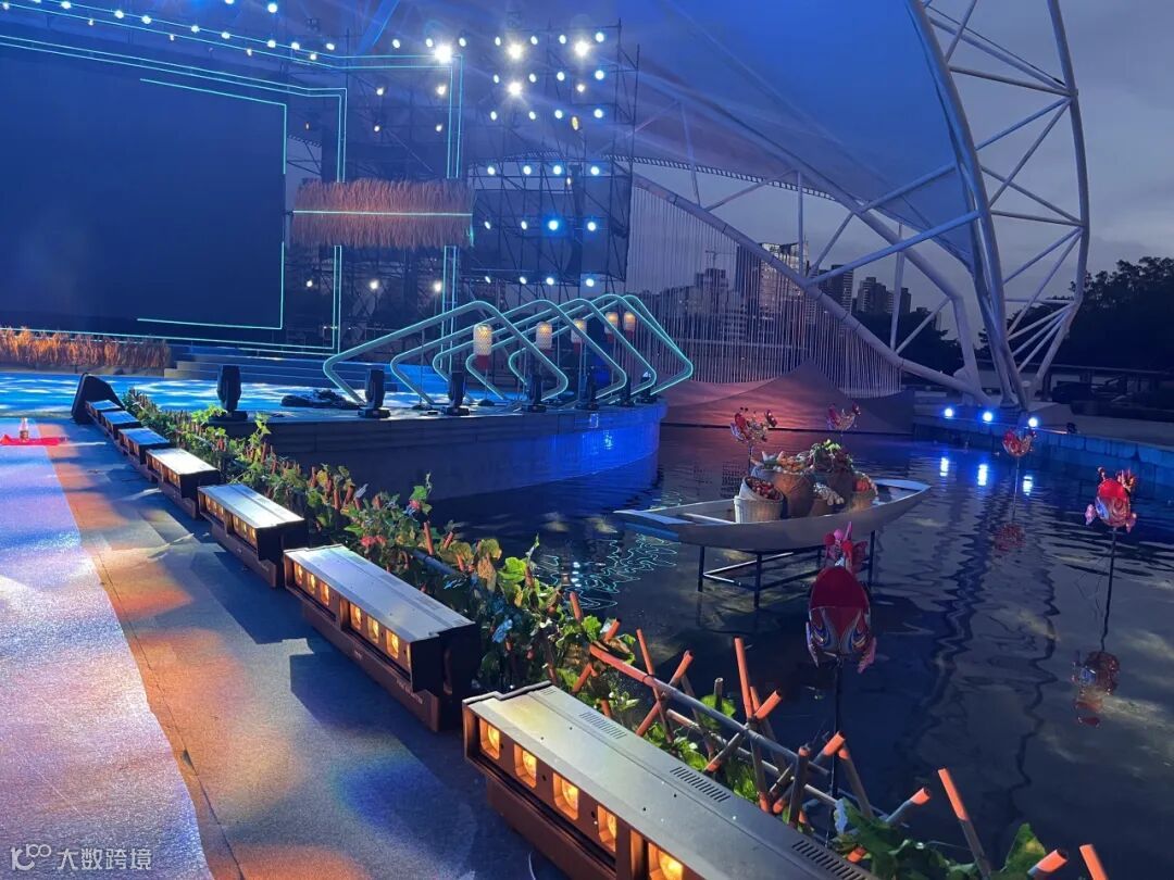 总决赛之夜,千盏灯光交织成流光溢彩的星河画卷,波光粼粼的水池将舞台环抱,营造出岭南水乡意境。规格之高、氛围之隆重,创赛事历届之最,每一位歌手都仿佛站在广东美丽乡村之中,每一个音符都伴随着灵动的视觉特效,与水中倒影相映成趣,为观众带来一场前所未有的感官盛宴。