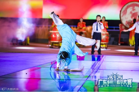 广东乡村歌手大赛的舞台上,三场岭南特色表演接连亮相:潮汕英歌舞配潮乐展民俗韵味,壮族民歌伴蜂鼓融乡村风貌,武术舞蹈倒立演绎添动感,共同绘就鲜活的乡土文化图景。