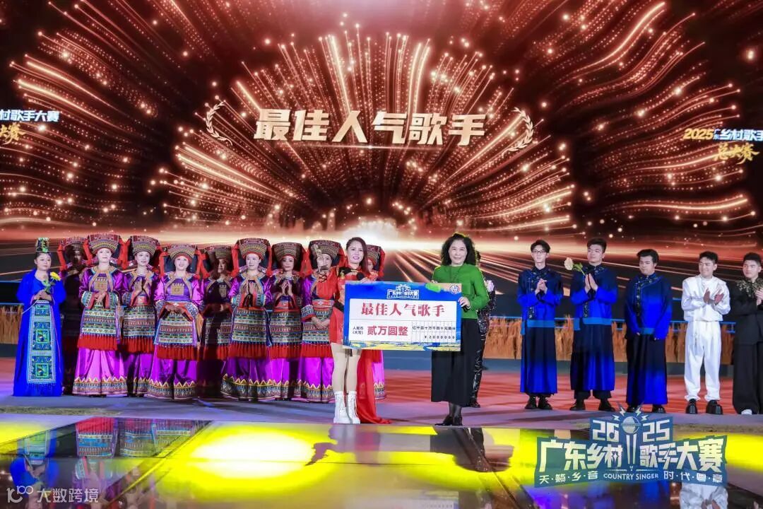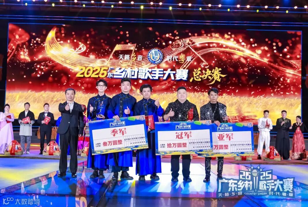 经过激烈角逐,来自汕尾陆丰的钟思远凭借深情演唱的一曲《这一次绝不放手》,以清澈穿透力和情感张力,摘得2025广东乡村歌手大赛桂冠,获得十万元现金大奖。来自肇庆广宁的谢国宝和来自梅州的客家后生团分别获得亚军和季军。来自清远连山的尹晓芸凭借五大社交媒体近14万的流量当选“2025广东乡村歌手大赛最佳人气歌手”,当晚她演唱的原创歌曲《粤来清连》,振奋无数清远儿女。