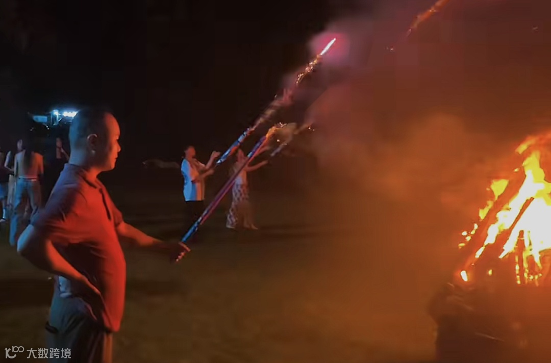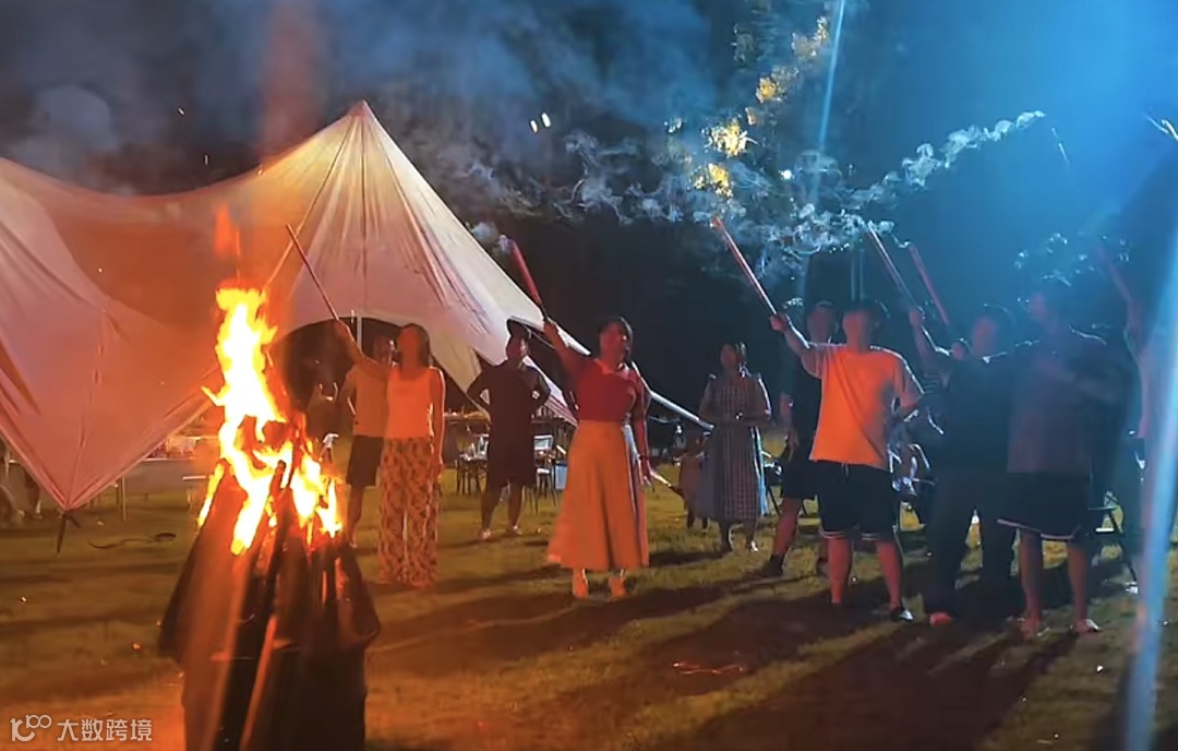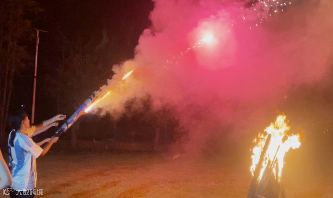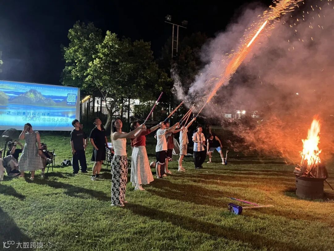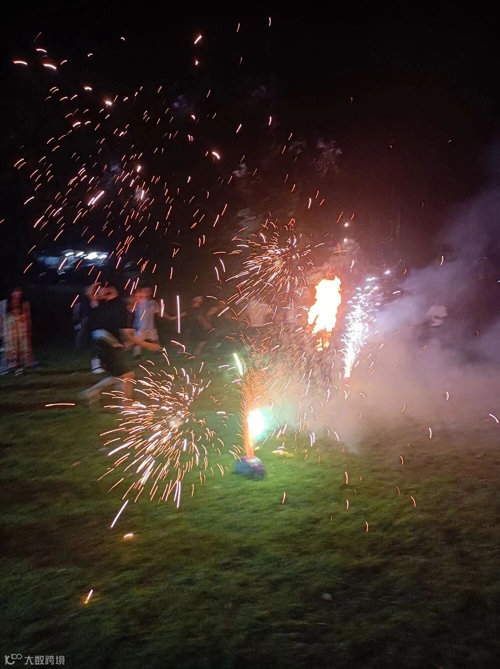 最令人期待的篝火与烟花环节如期而至。熊熊燃烧的篝火照亮了每个人的脸庞,大家手拉手围着篝火跳起舞蹈,欢声笑语在夜空中回荡。