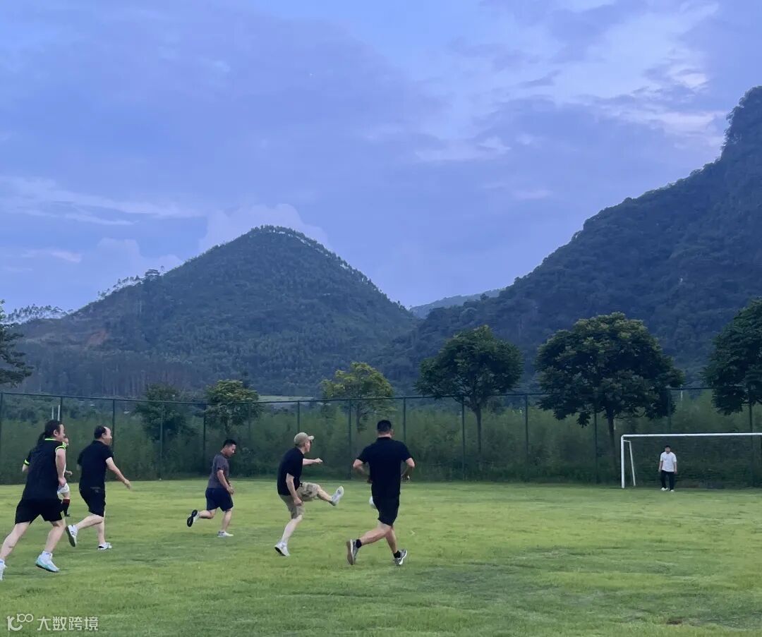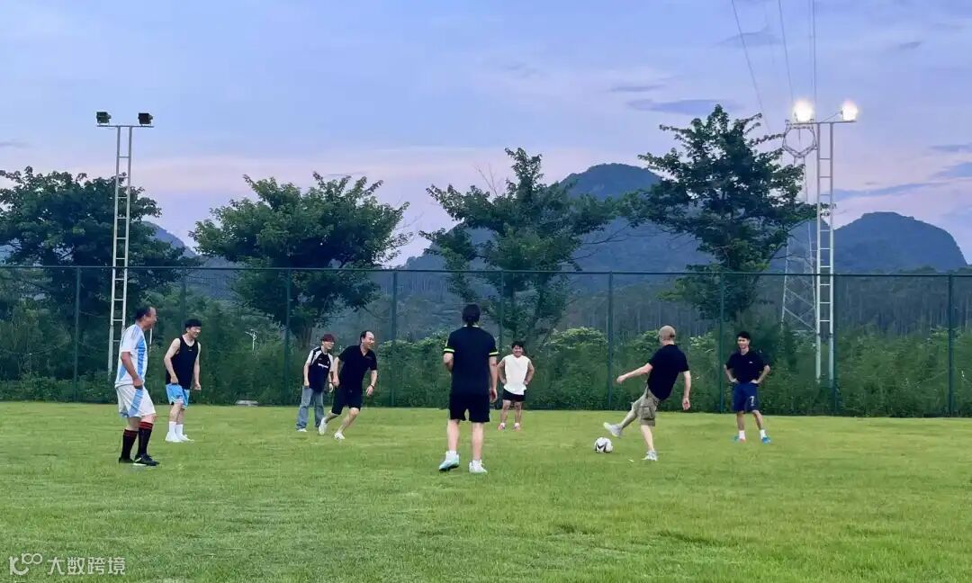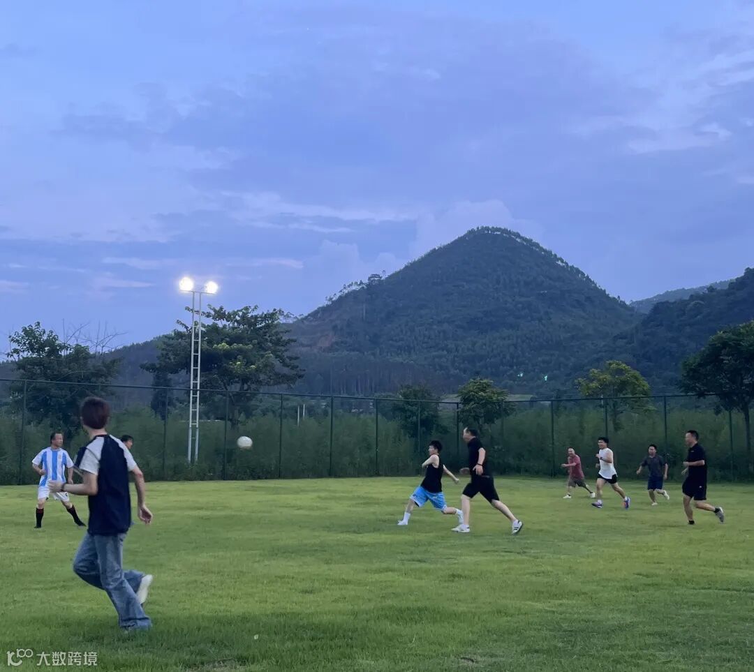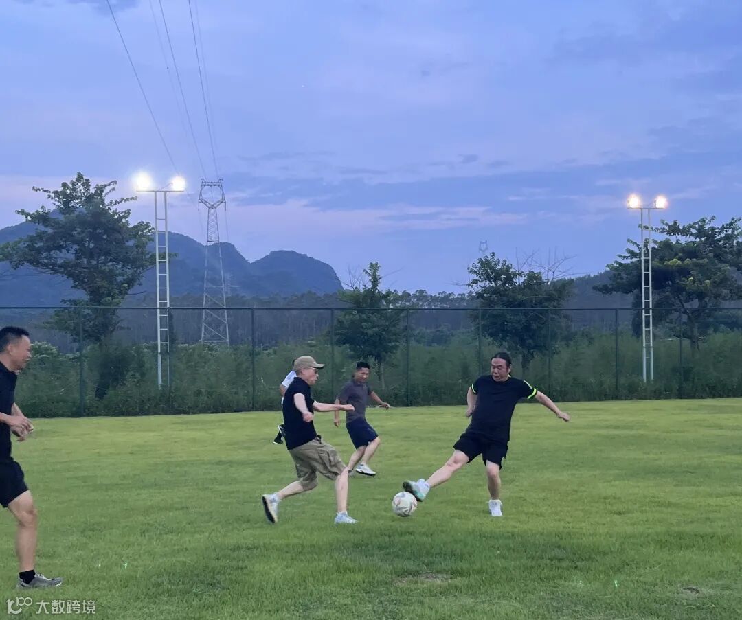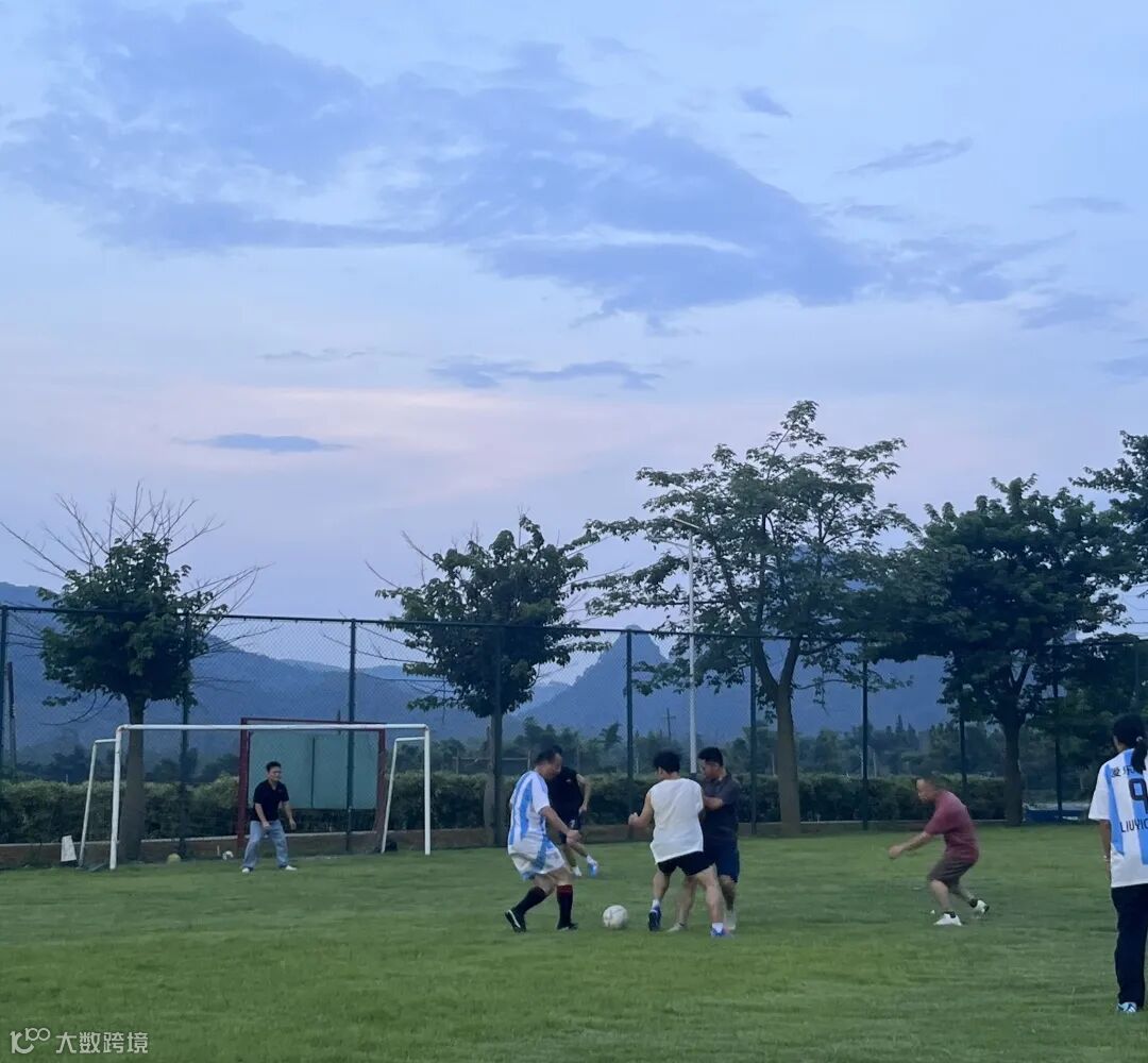 漂流结束后大家回到千影悦,在绿茵场上,一场 “公司内部足球友谊赛” 火热开场。无论是资深球迷还是 “足球小白”,都积极加入其中:有人奋力奔跑争夺足球,有人默契传球配合进攻。