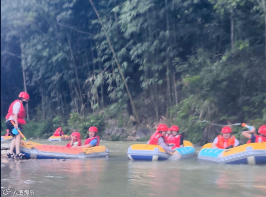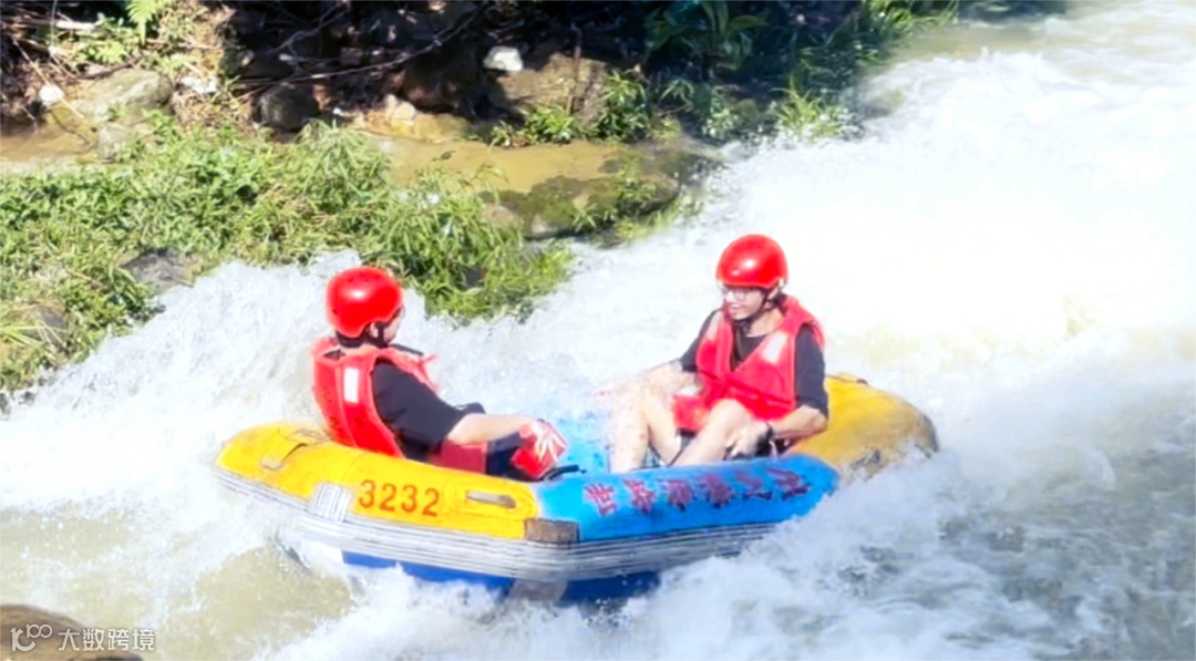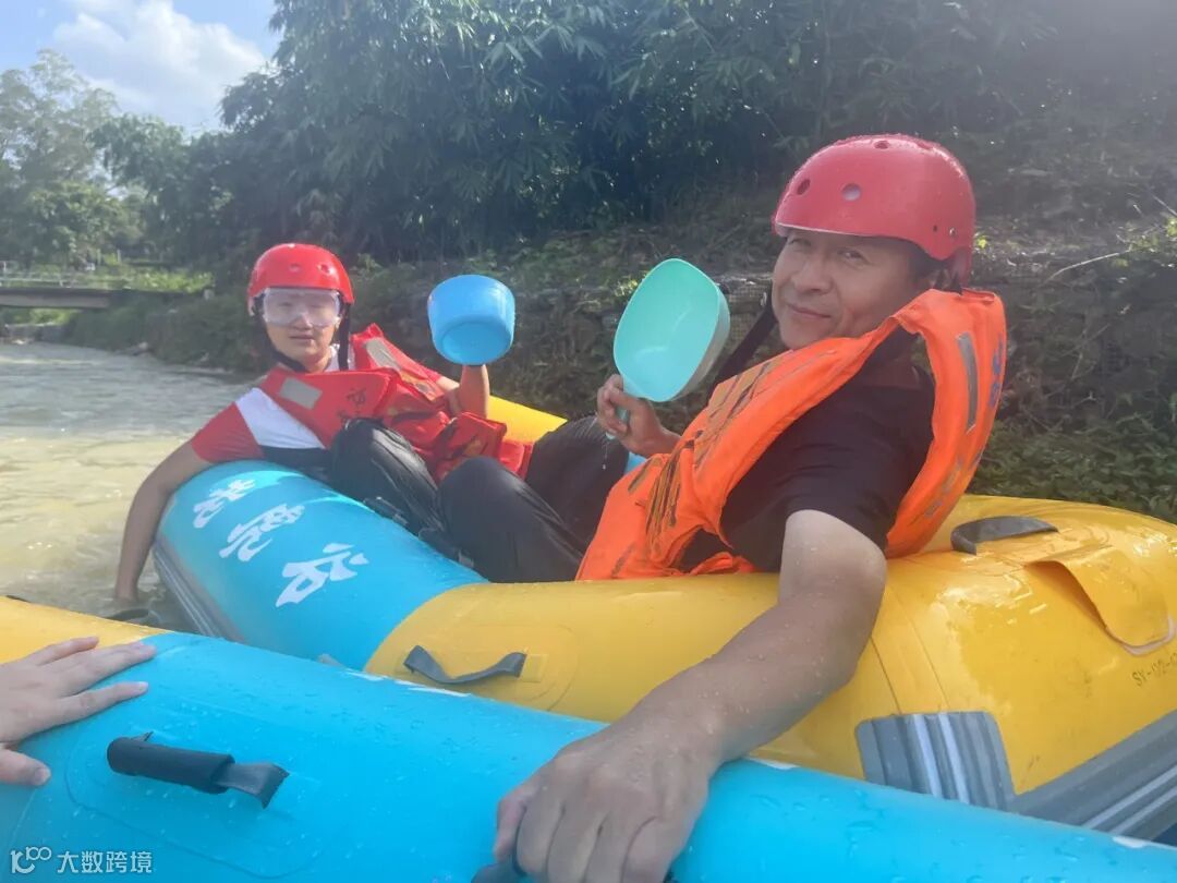 大家办理入住后吃完午饭,前往期待已久的老虎谷漂流景区,穿上救生衣、戴上安全帽、拿起漂流工具,大家两两一组登上橡皮艇,一场 “速度与激情” 的漂流之旅正式开启!