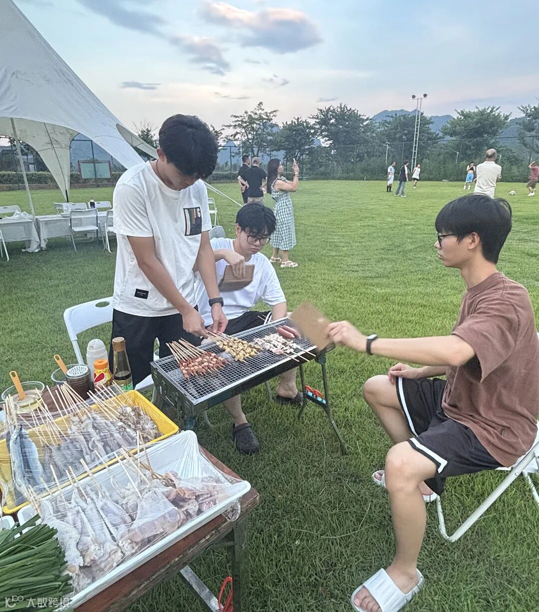 夜幕缓缓降临,期待已久的 “烧烤盛宴” 正式拉开帷幕。烤架上滋滋作响的肉串、香气扑鼻的蔬菜、冰镇爽口的饮料、啤酒,让大家食指大动。