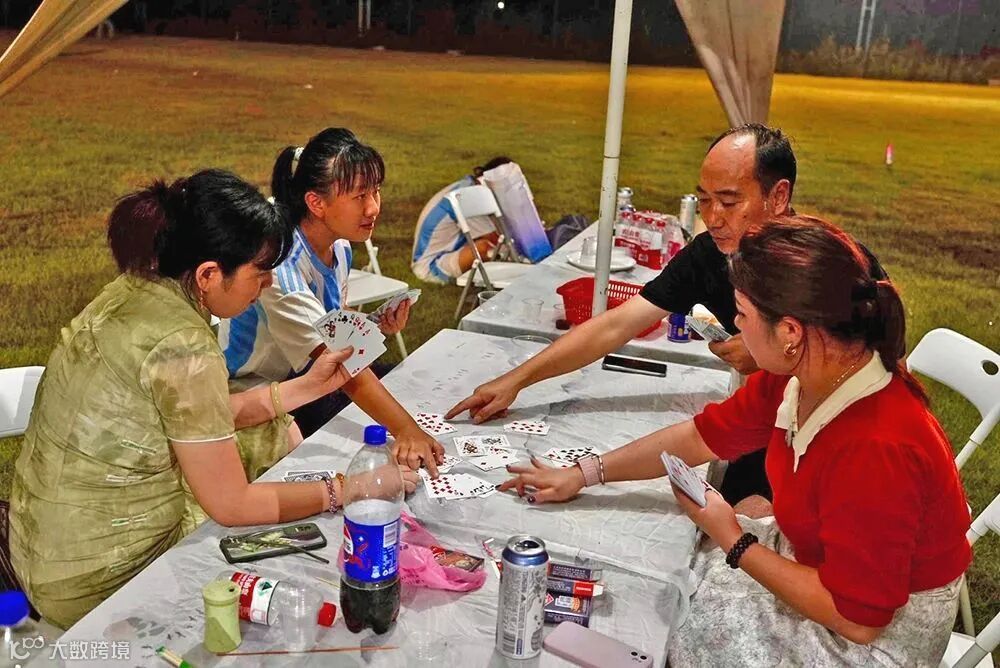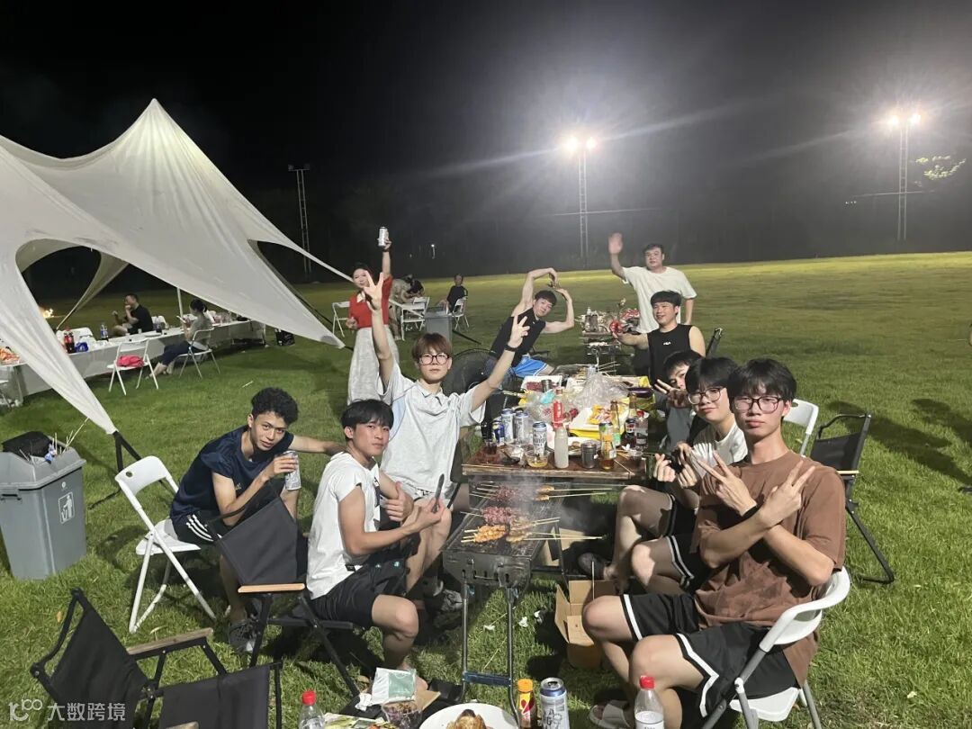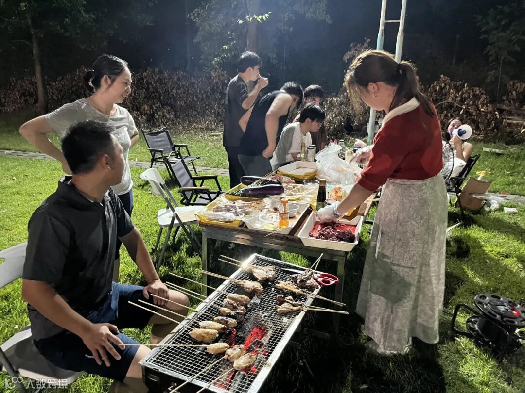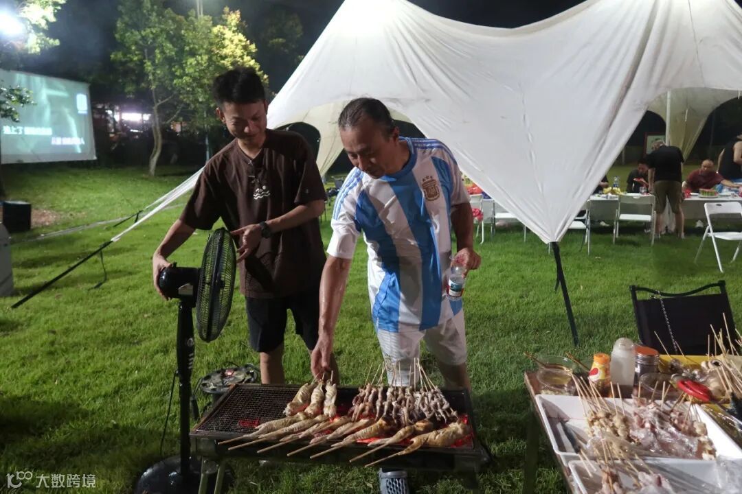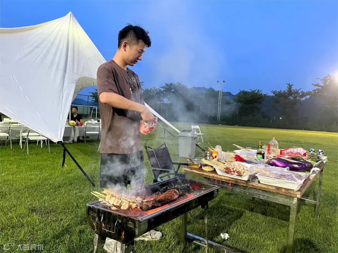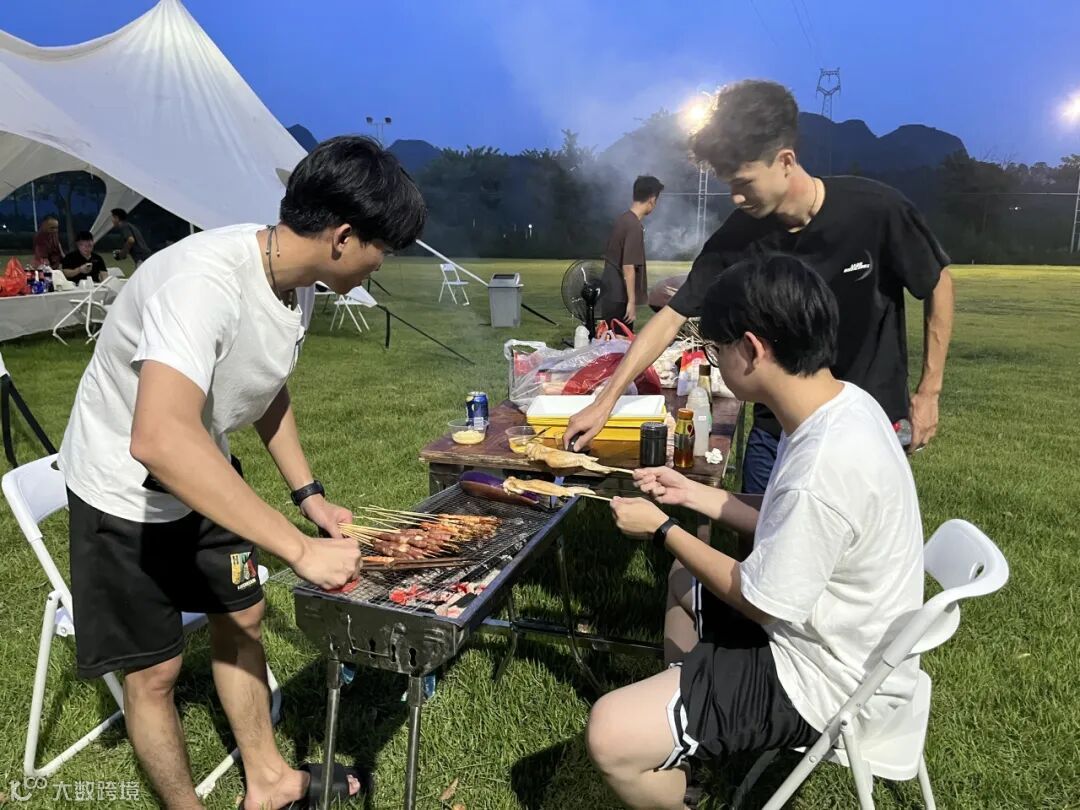 大家分工协作,有人负责烤串,有人负责分发食材,一边享用美食,一边打掼蛋、玩游戏,一边开启 “户外 K 歌模式”—— 经典老歌、流行金曲轮番上演,熟悉的旋律让现场氛围愈发热烈。
