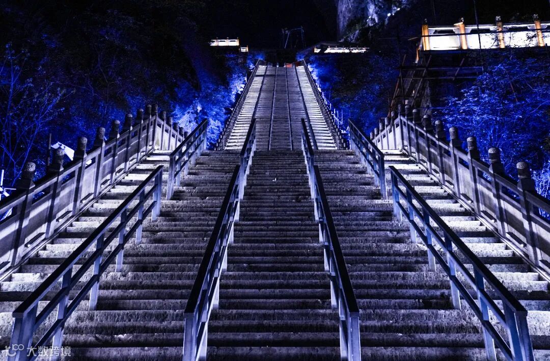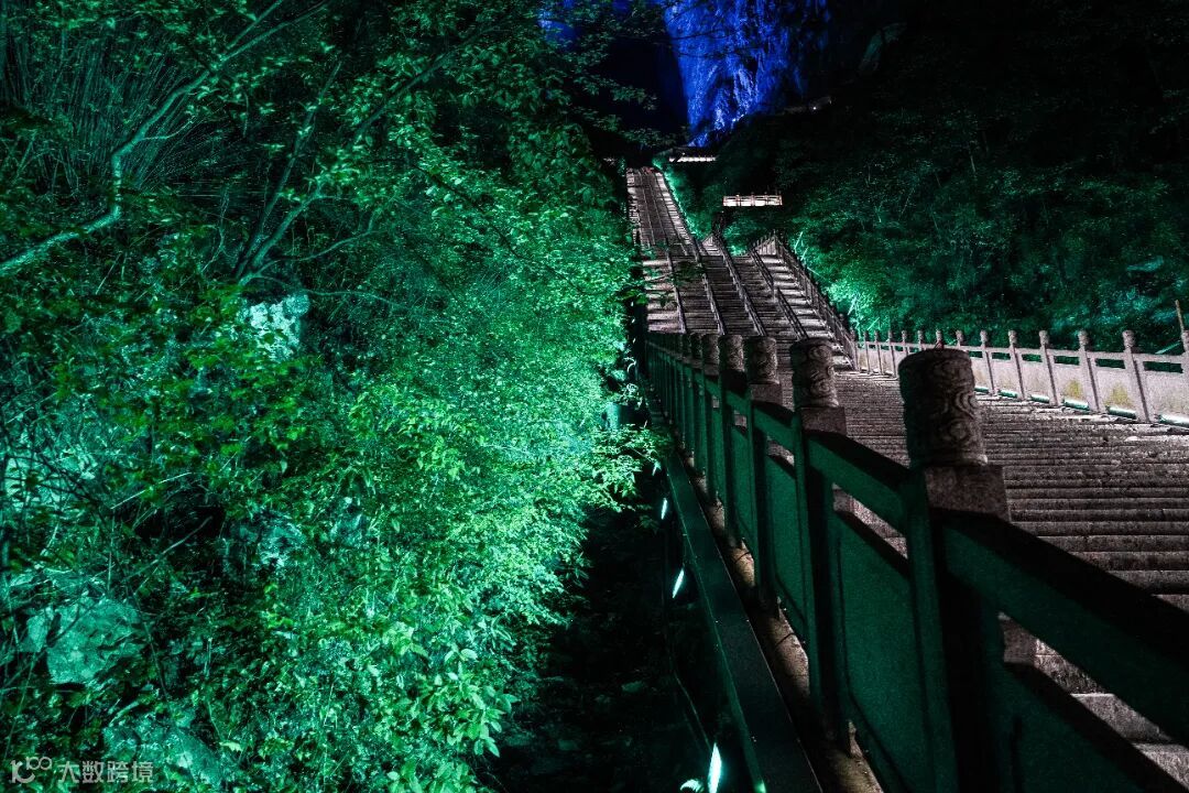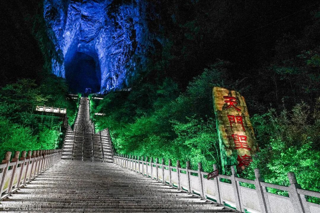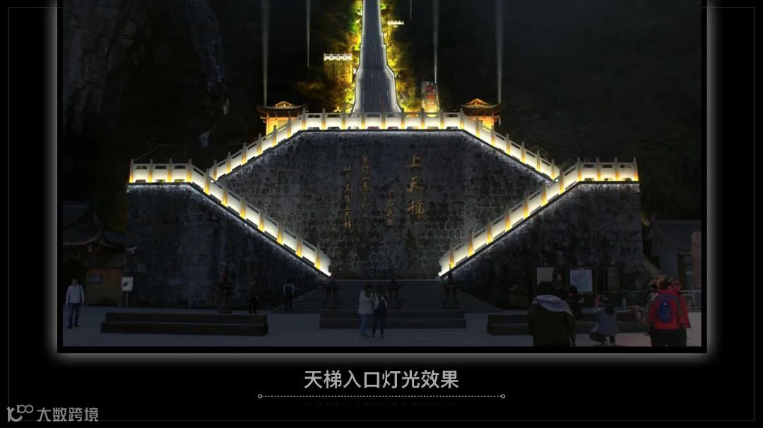 张家界天门山天梯亮化于2018年至2021年,2018年开展前期设计工作:了解当地文化、进行现场考察,针对现场情况进行分析及效果制作。2019年9月开始进场施工,周期为2-3个月,因天气不稳定,施工战线拉长,至2020年施工完成进行现场调试,2021年5月对外开放。