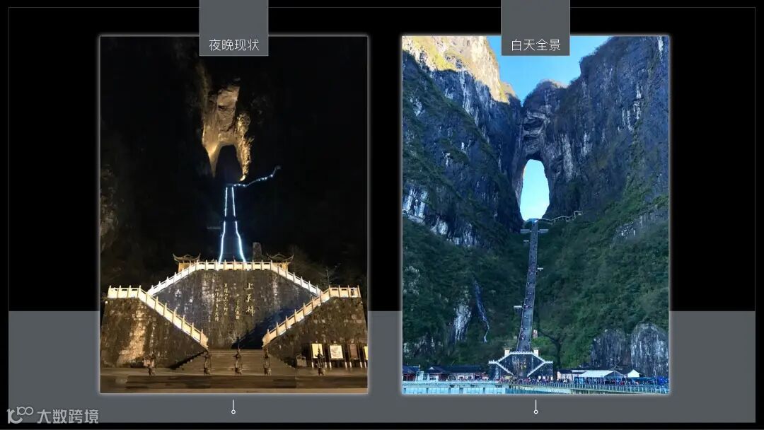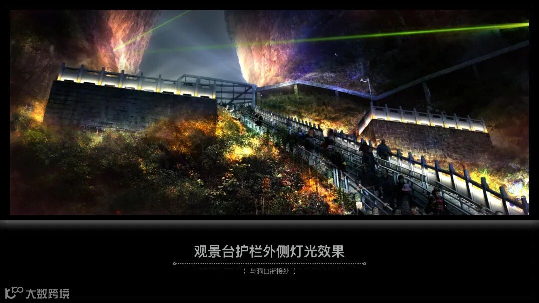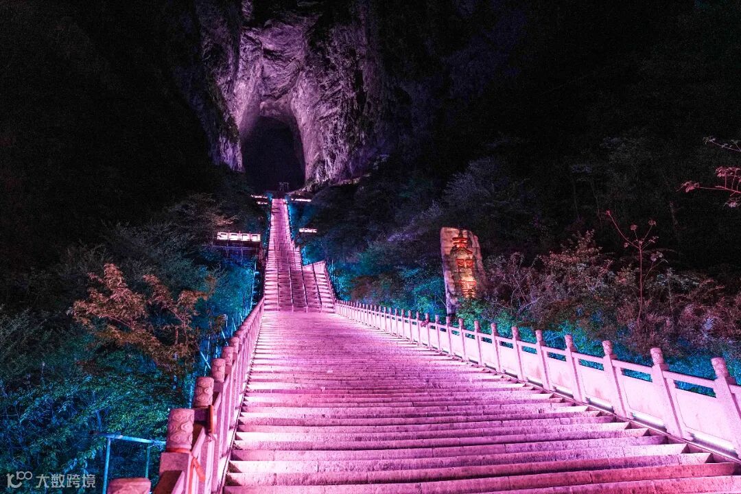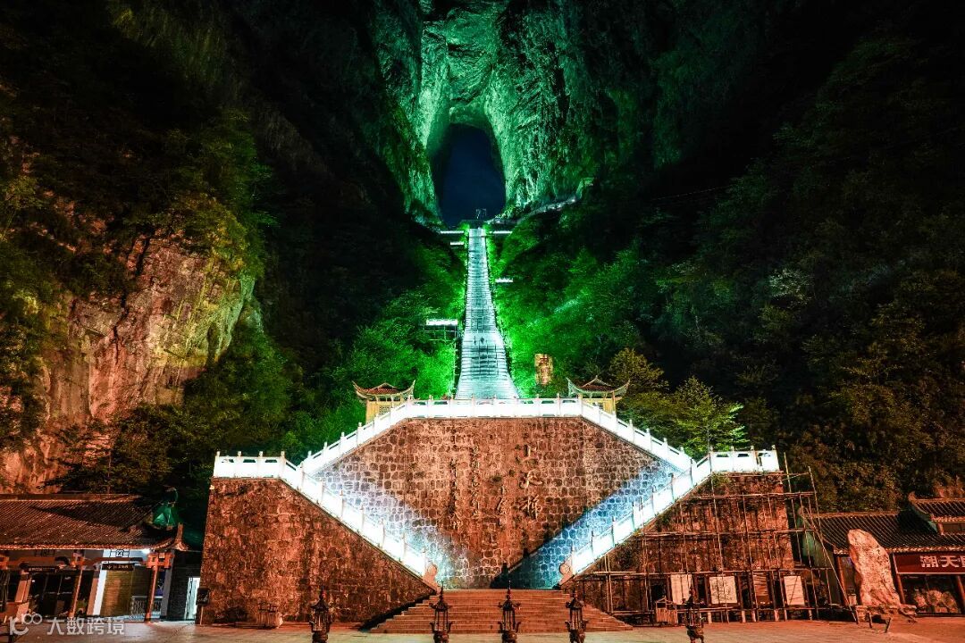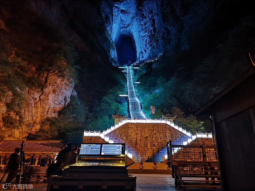 张家界天门山天梯亮化于2018年至2021年,2018年开展前期设计工作:了解当地文化、进行现场考察,针对现场情况进行分析及效果制作。2019年9月开始进场施工,周期为2-3个月,因天气不稳定,施工战线拉长,至2020年施工完成进行现场调试,2021年5月对外开放。
