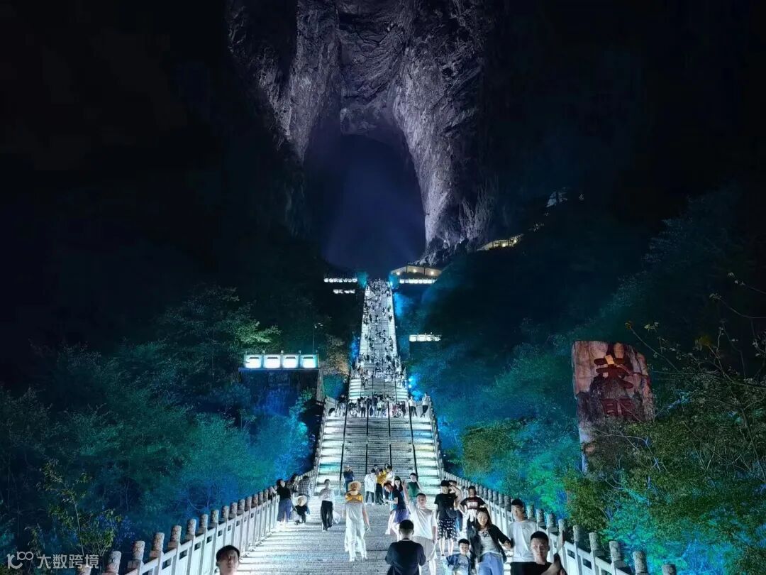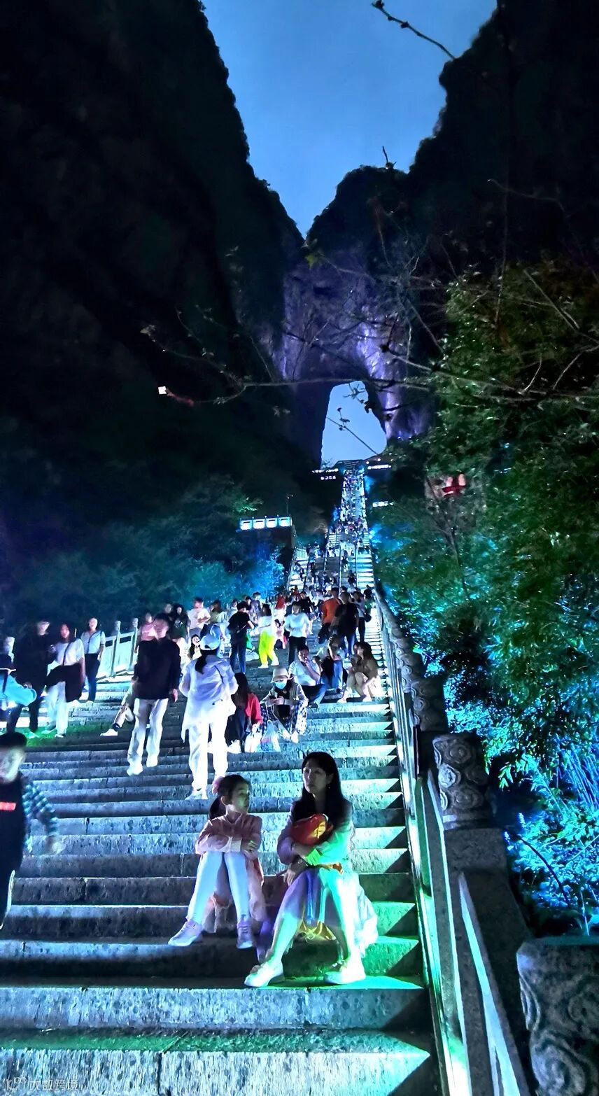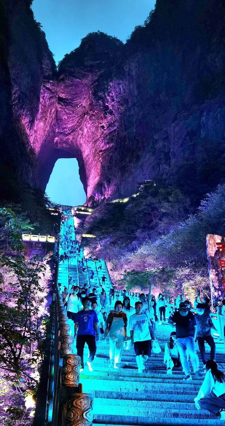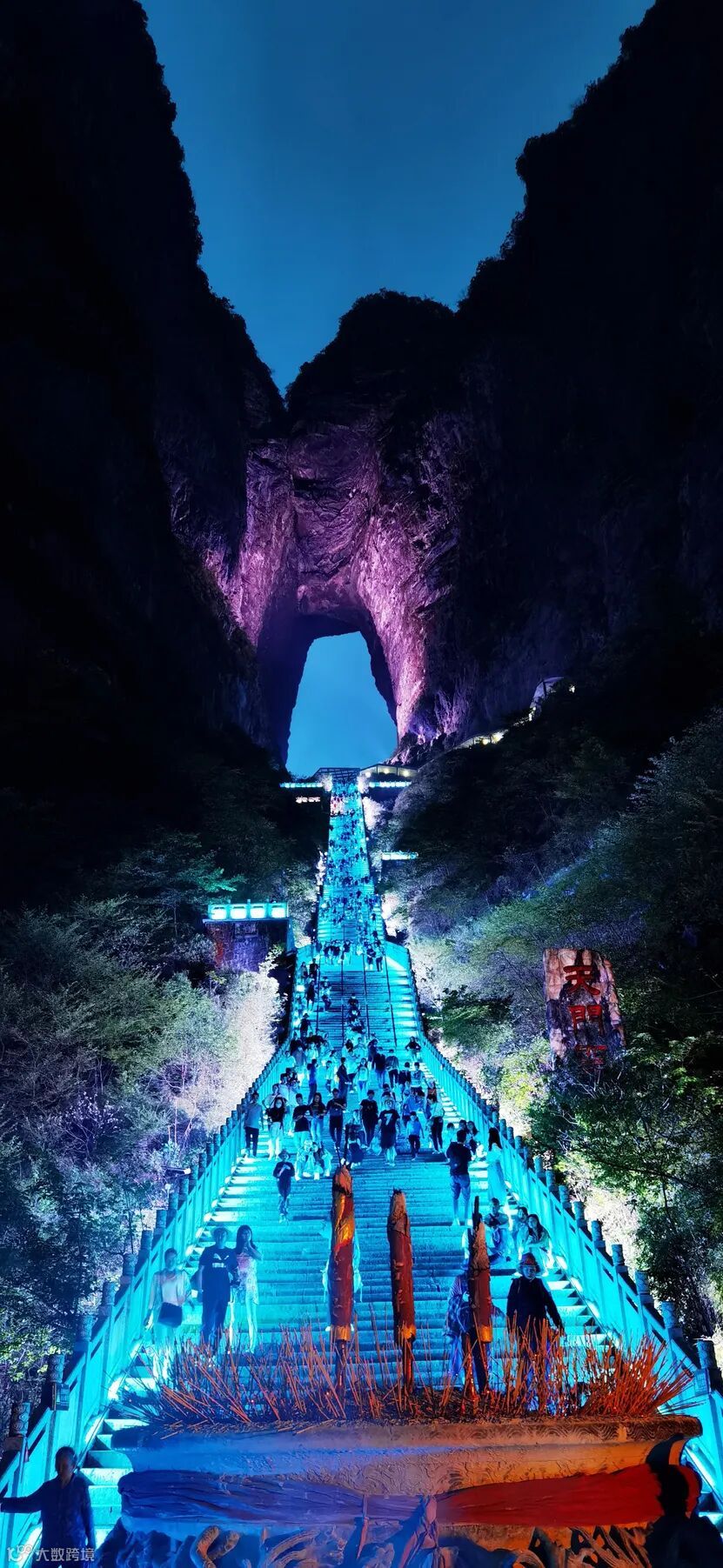 在天门山标志性景点——世界最高天然穿山溶洞天门洞,游人如织,上天梯不但是通达天门的途径,还是许愿祈福的灵地,其前置有天门祭坛,它专供烧香拜天之用,集天地众神之灵气福惠于一体,古时是信徒必拜之所。