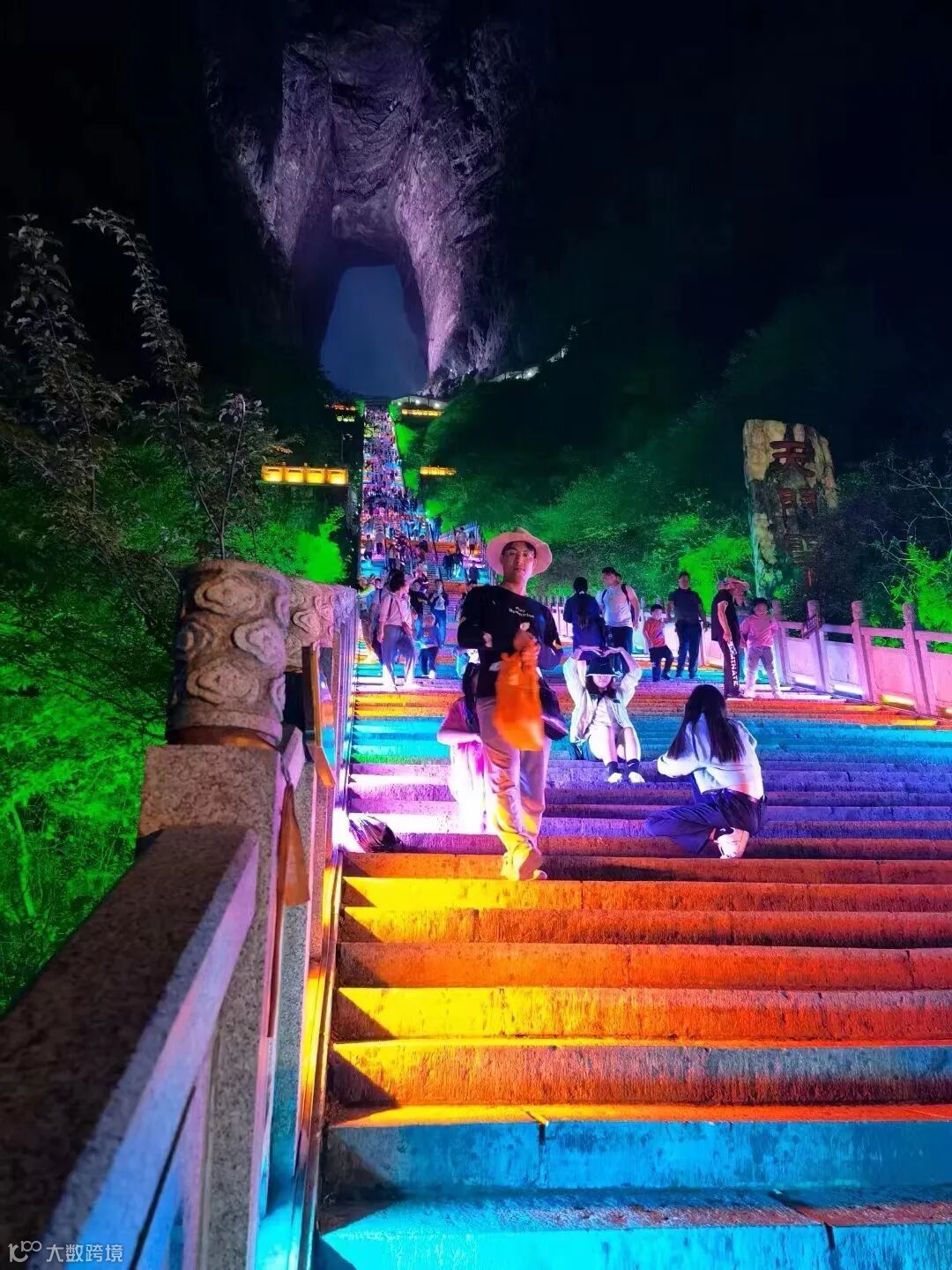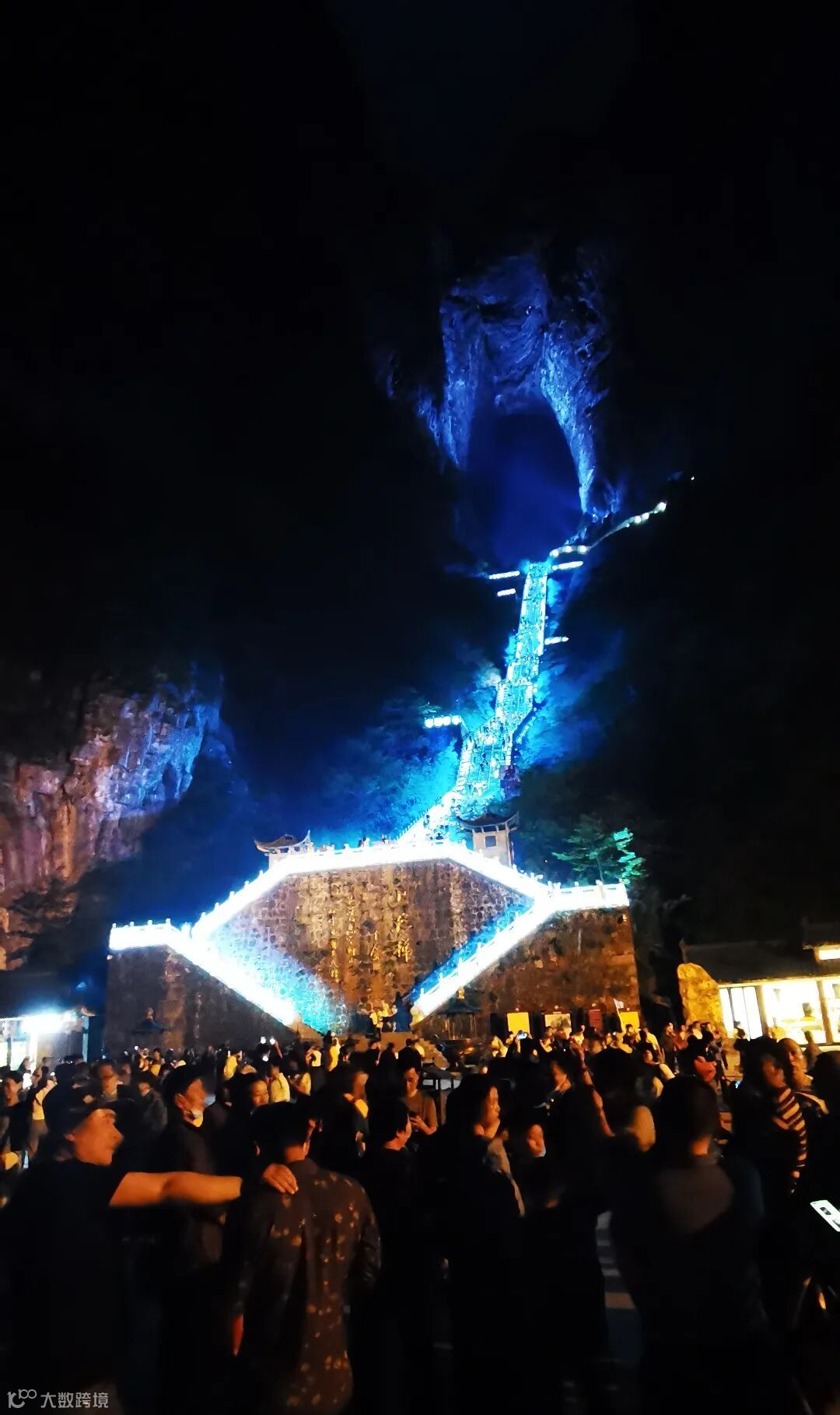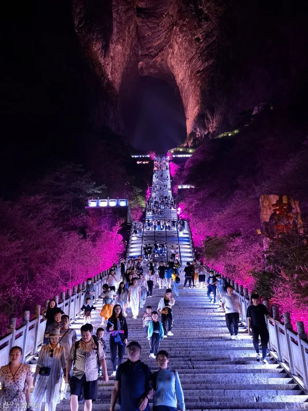 在天门山标志性景点——世界最高天然穿山溶洞天门洞,游人如织,上天梯不但是通达天门的途径,还是许愿祈福的灵地,其前置有天门祭坛,它专供烧香拜天之用,集天地众神之灵气福惠于一体,古时是信徒必拜之所。