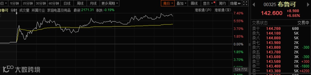 该股爆发亦带动香港新消费板块走强。布鲁可、古茗大涨超6%,泡泡玛特大涨超3%,蜜雪集团上涨近2%。