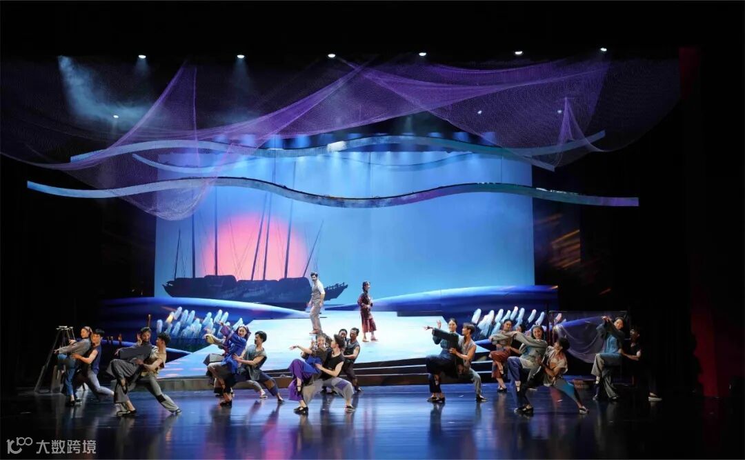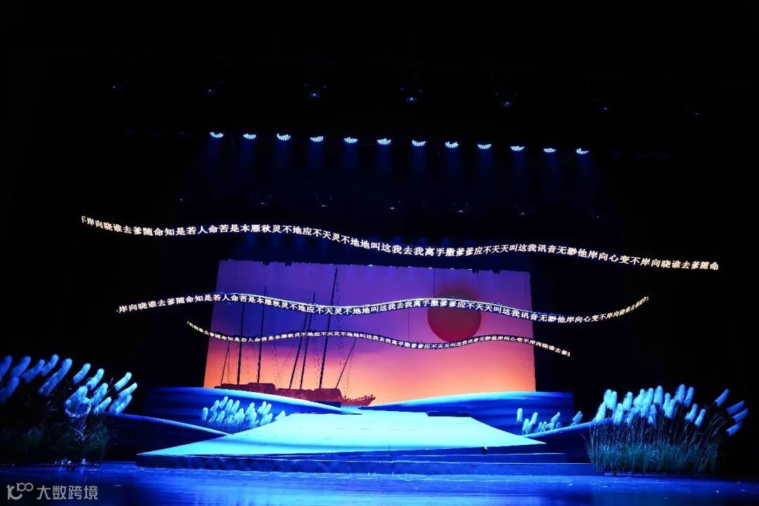 在舞美设计上,设计了LED异形海浪造型屏,在海浪的造型里也可实现多种变化,音乐剧还尝试用渔歌的文字形式在舞台上呈现,与音乐有机结合。