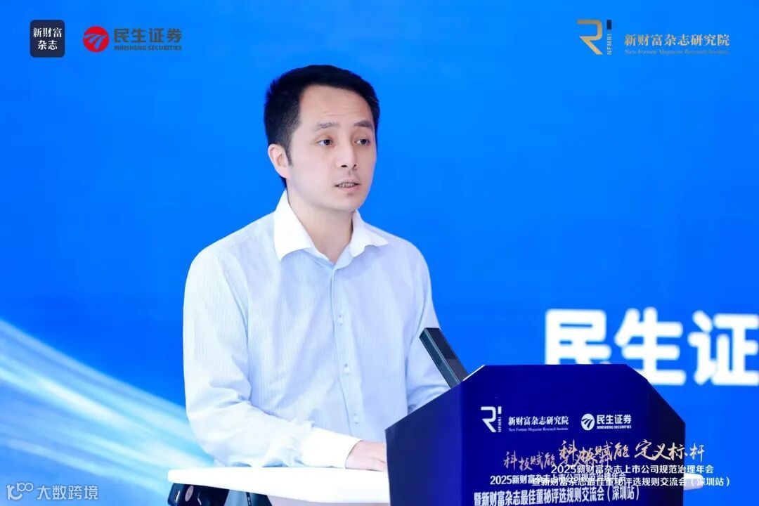 6月11日,“2025新财富杂志上市公司规范治理年会暨新财富杂志最佳董秘评选规则交流会(深圳站)”在证券时报社新办公大楼圆满举办。作为系列活动的收官之场,本次活动由证券时报社、深圳上市公司协会指导,新财富杂志社主办,民生证券作为战略支持机构,比亚迪董秘会秘书李黔、和而泰高级副总裁罗珊珊、优必选副总裁邓峰等100多位上市公司代表、行业精英及专家学者,聚焦ESG理念下上市公司治理革新、董秘职能升级,深度剖析AI赋能产业发展的实践路径,同时权威解读新财富杂志最佳董秘评选规则,为资本市场高质量发展注入强劲动能。
