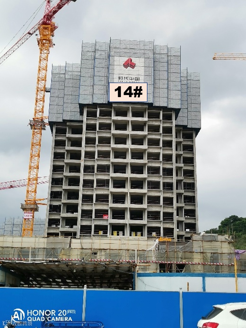 14#主体结构完成至17层;外立面幕墙完成5至8层窗框安装;消防立管安装至15层,跟进土建进度施工;竖向风管完成1至9层安装;室外排水管安装至16层;室内排水管安装至13层