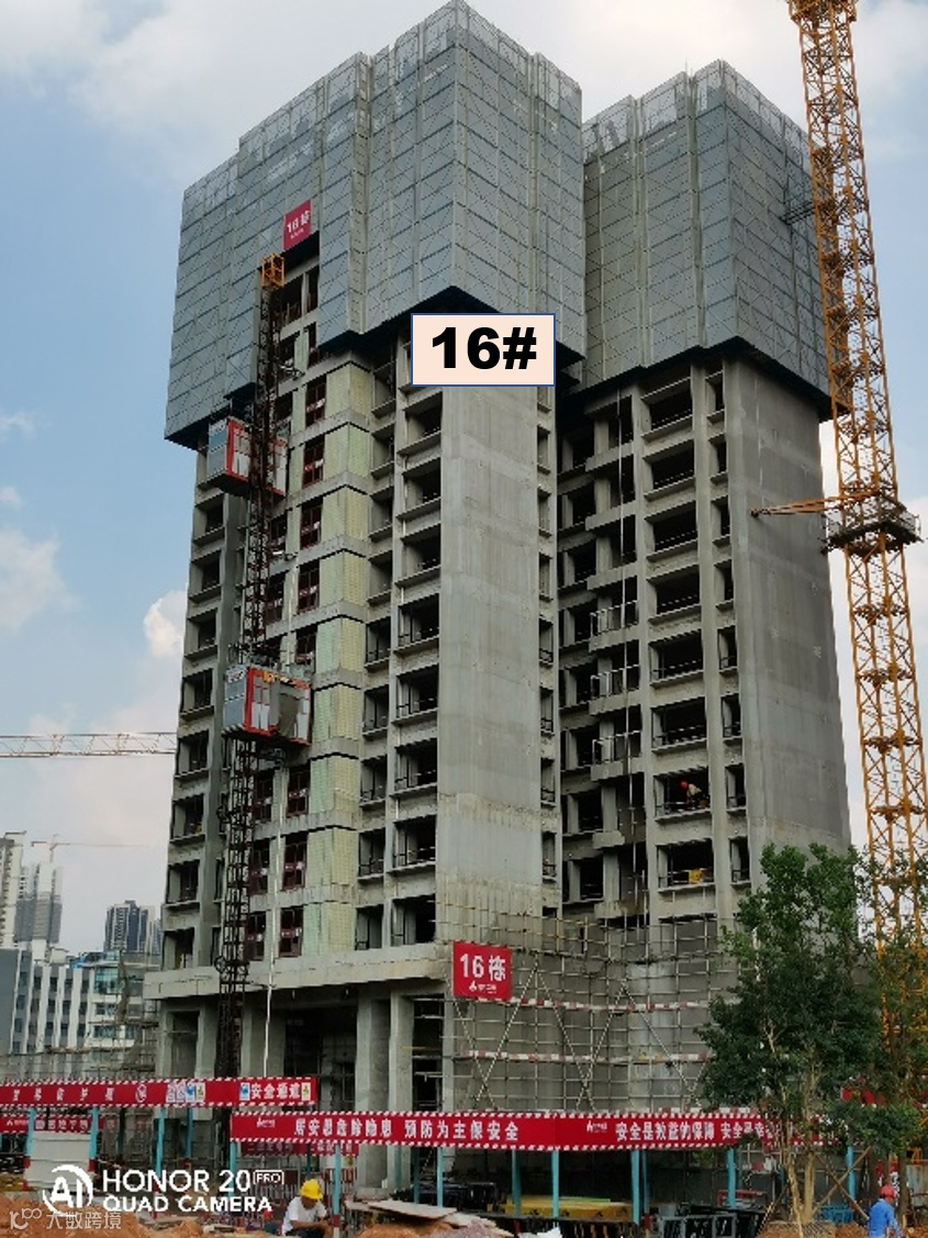 16#主体结构完成至16层;外立面幕墙完成3至7层窗框安装;水电预埋至16层;竖向风管完成至10层;消防立管安装至10层