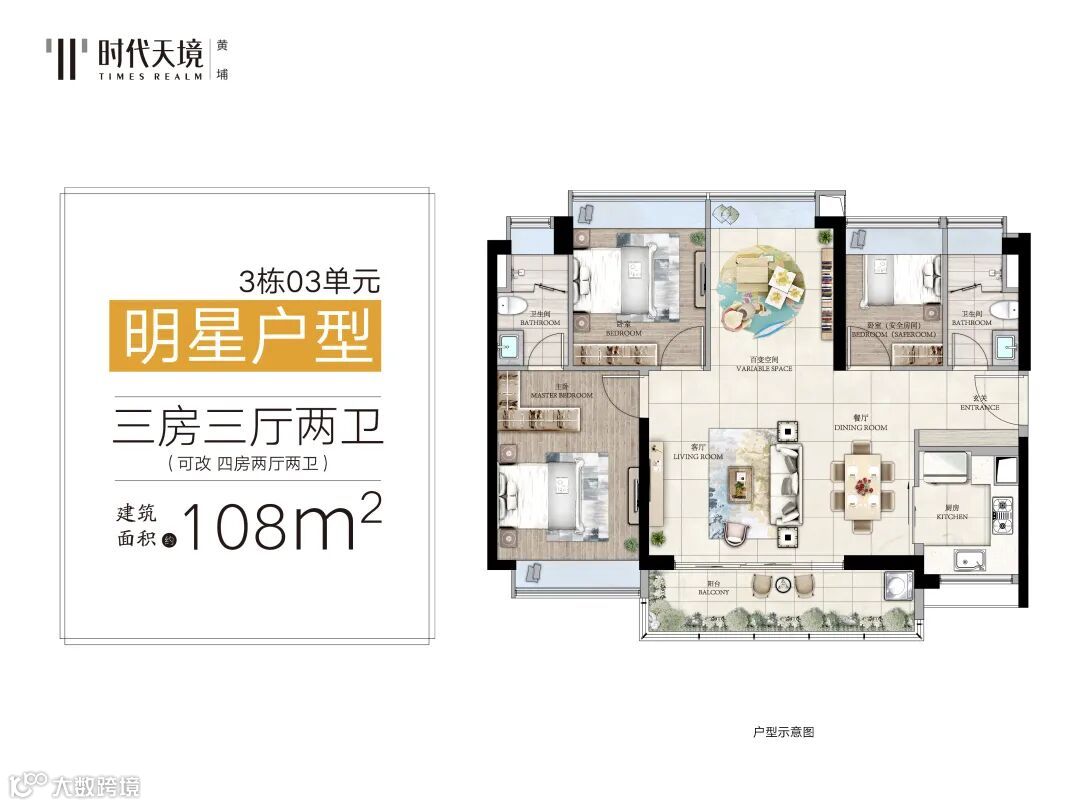 3+3可变四房,动静皆随心,为生活延展出更多可能。