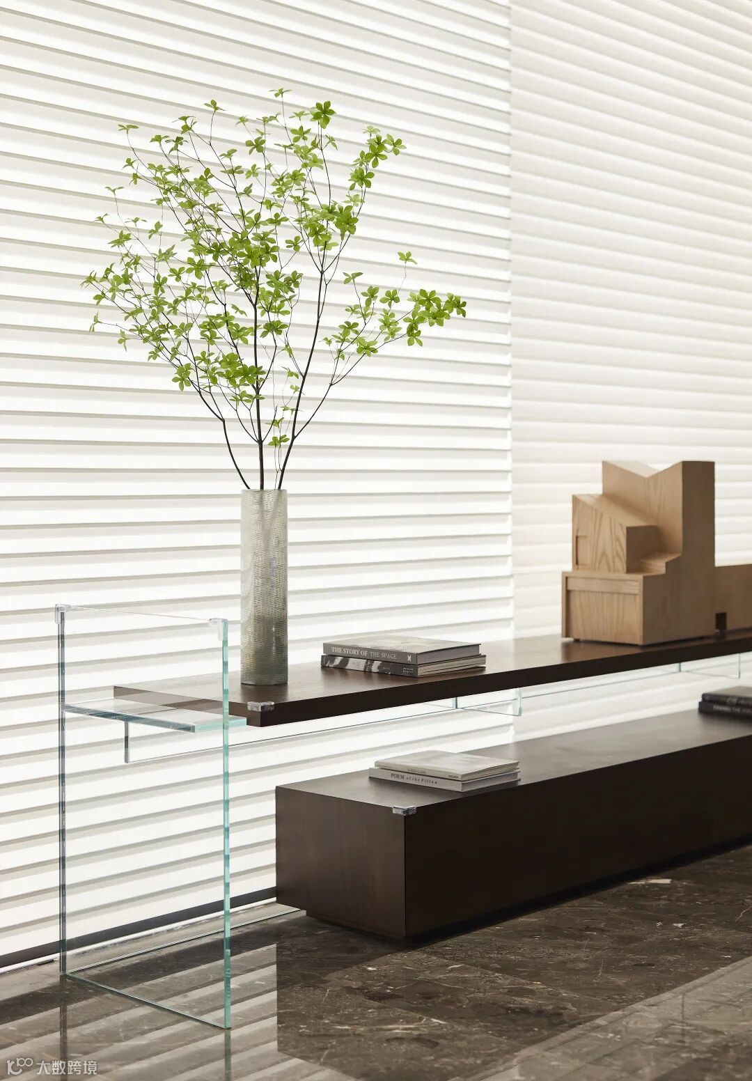 结构是光线的赋予者,蒙德里安构图法的秩序,让空间组构向外延申,通过意境化的空间组合,在极致空间的转换中,现代的通透感构建行望之间的虚与实。