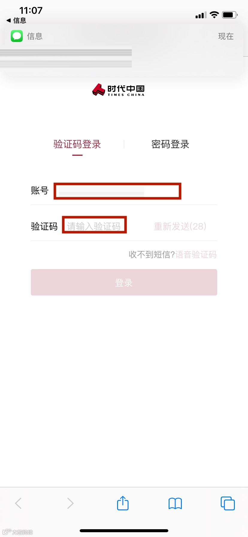 接短信→登录→认证