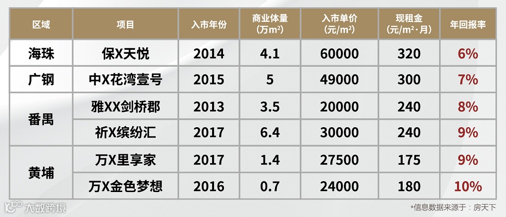 据统计,广州商铺年回报率领先全国,多数社区铺年回报率在6%以上,至高达10%,立湾区吸金风向标。