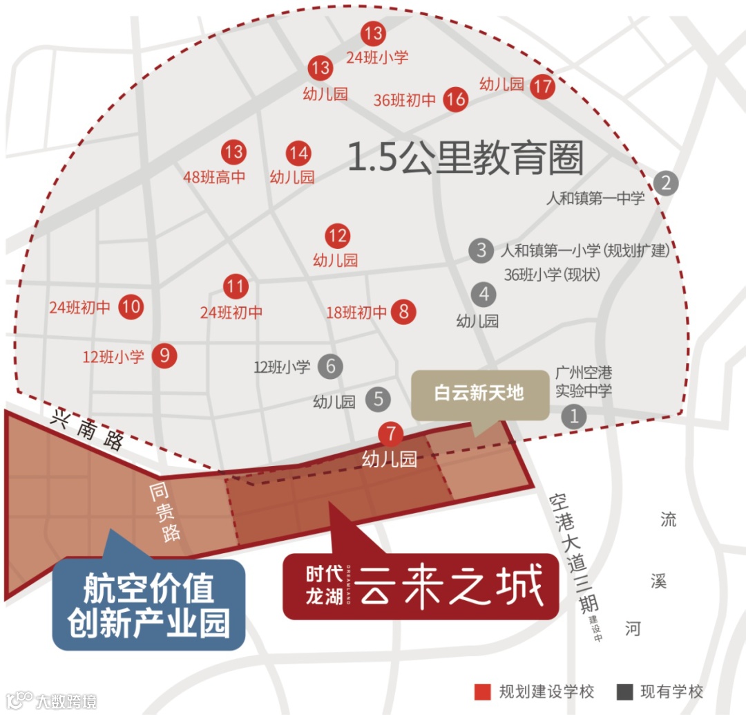 周边现有人和一中、广州市第七十一中学(省一级)。未来新增4所初中、1所高中。(温馨提示:最终以教育局公示为准。)