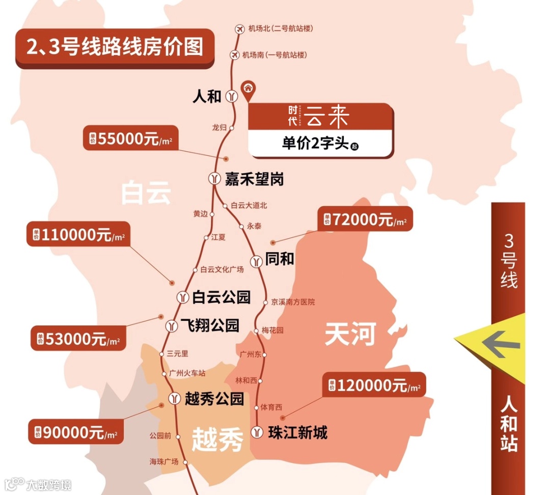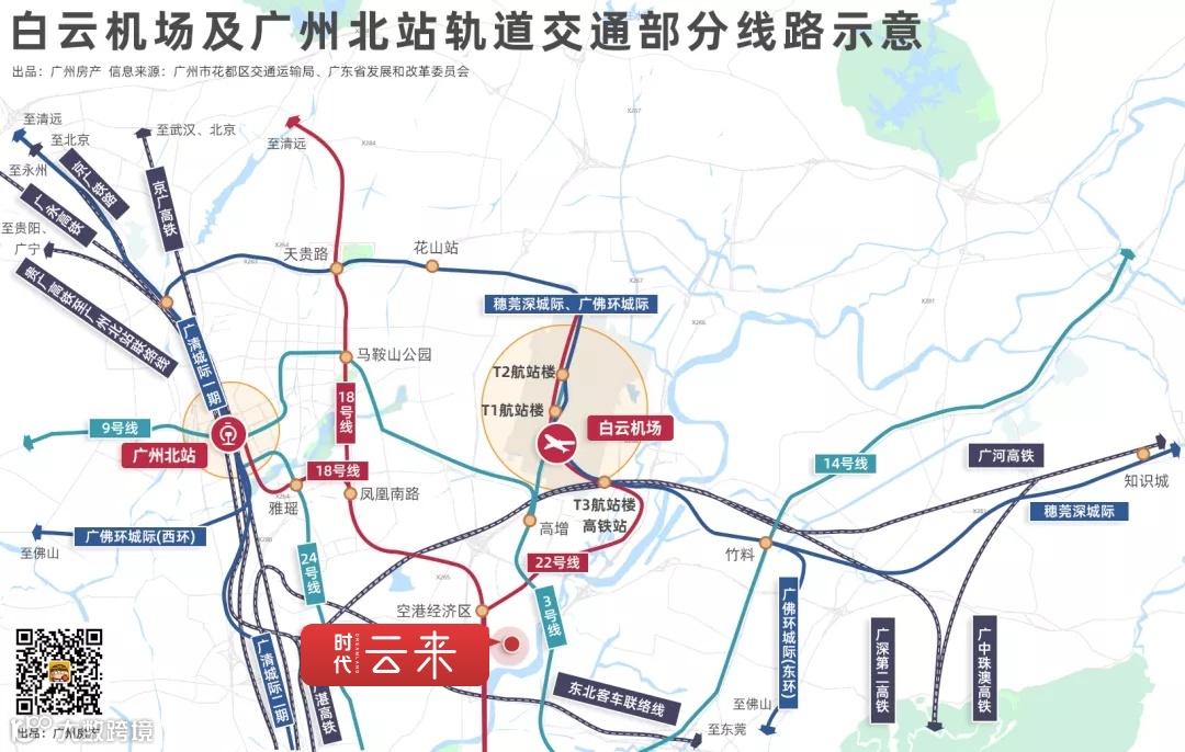 毗邻地铁3号线人和站,2 站达嘉禾望岗,无缝换乘2号线及14号线,6 站到白云新城;距18/22号线空港经济区站(规划)仅约800米,计划将向北延伸至清远,向南衔接东莞,直通深圳。同时联结各大TOD枢纽,未来规划将南延至中山、珠海。