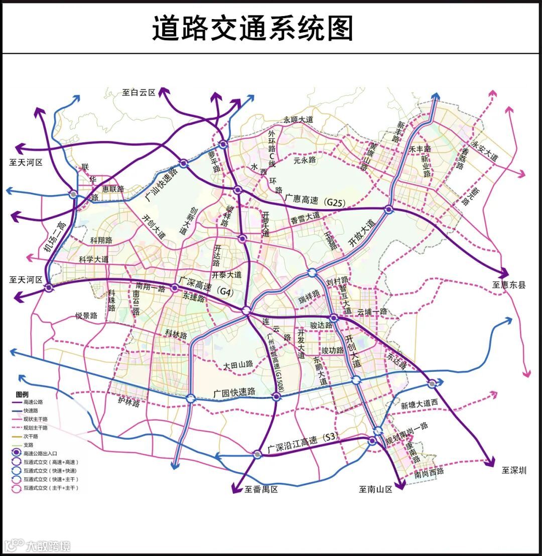 交通规划方面,构建“五横六纵”高快速路网结构,提升联系效率。同时,加快推进机场第二高速建设;落实开放大道快速路升级方案;落实开创大道南段快速路升级方案。加强规划区城市道路与高快速路的衔接,实现与湾区节点城市和交通枢纽1小时互达。