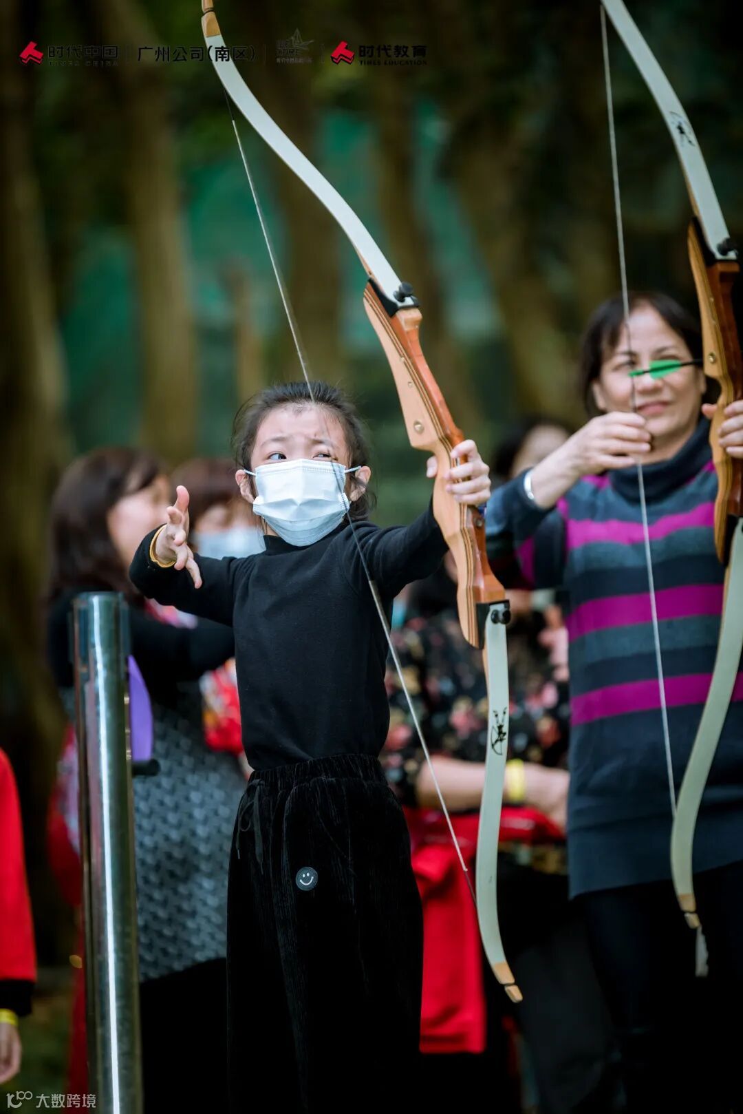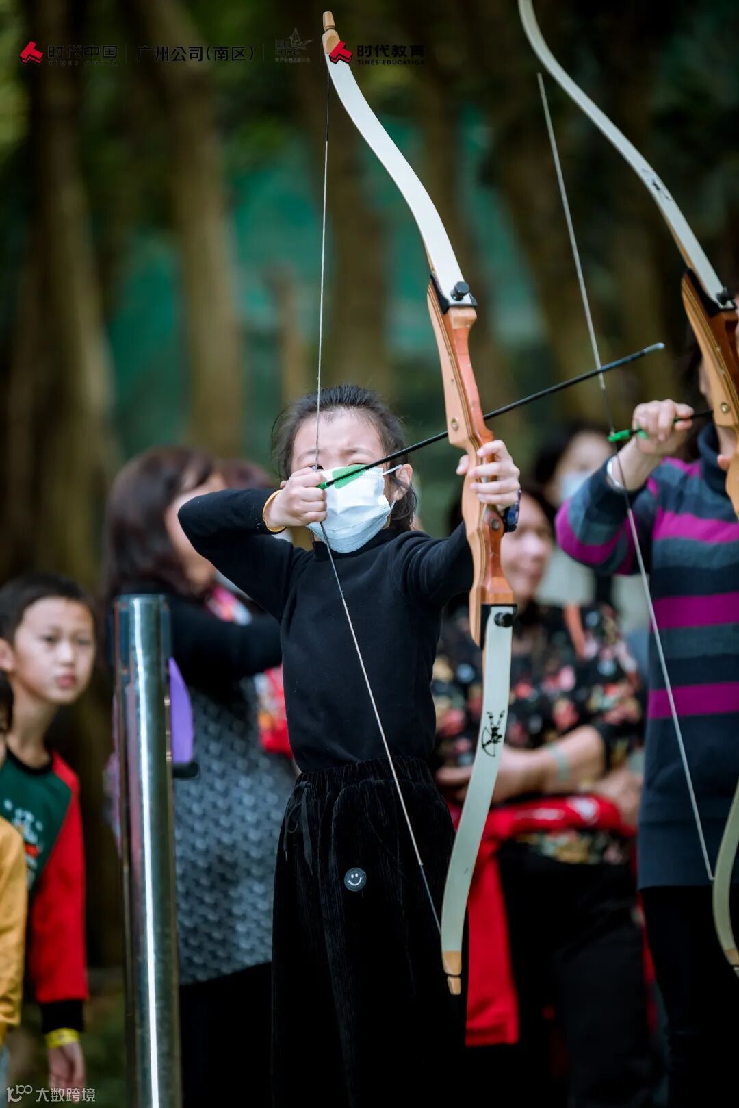 随后大家移步来到射箭场。大小朋友在导师的指导下开始了他们的射箭初体验。