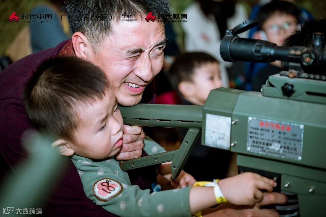 这位父亲言传身教,一边自己瞄准,一边教授孩子技巧,最后两个人还相互竞技比赛,其乐融融。