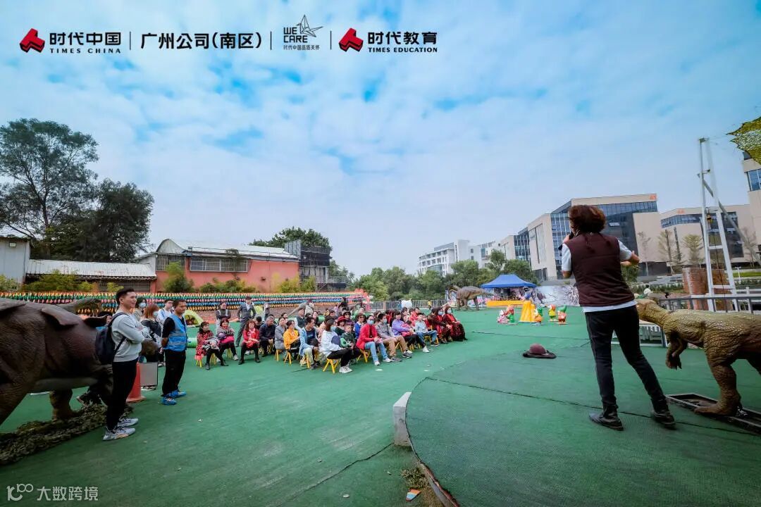 大家在参观营地的过程中,恰逢其会地邂逅了园区中的恐龙展,随风转动的五彩风车和可爱生动的恐龙模型瞬间点燃了理事们打卡合影的热情。