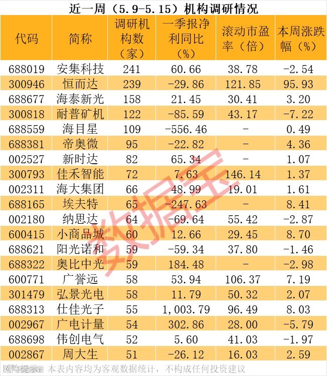 除了安集科技,恒而达、海泰新光、耐普矿机、海目星等个股也有逾百家机构调研。