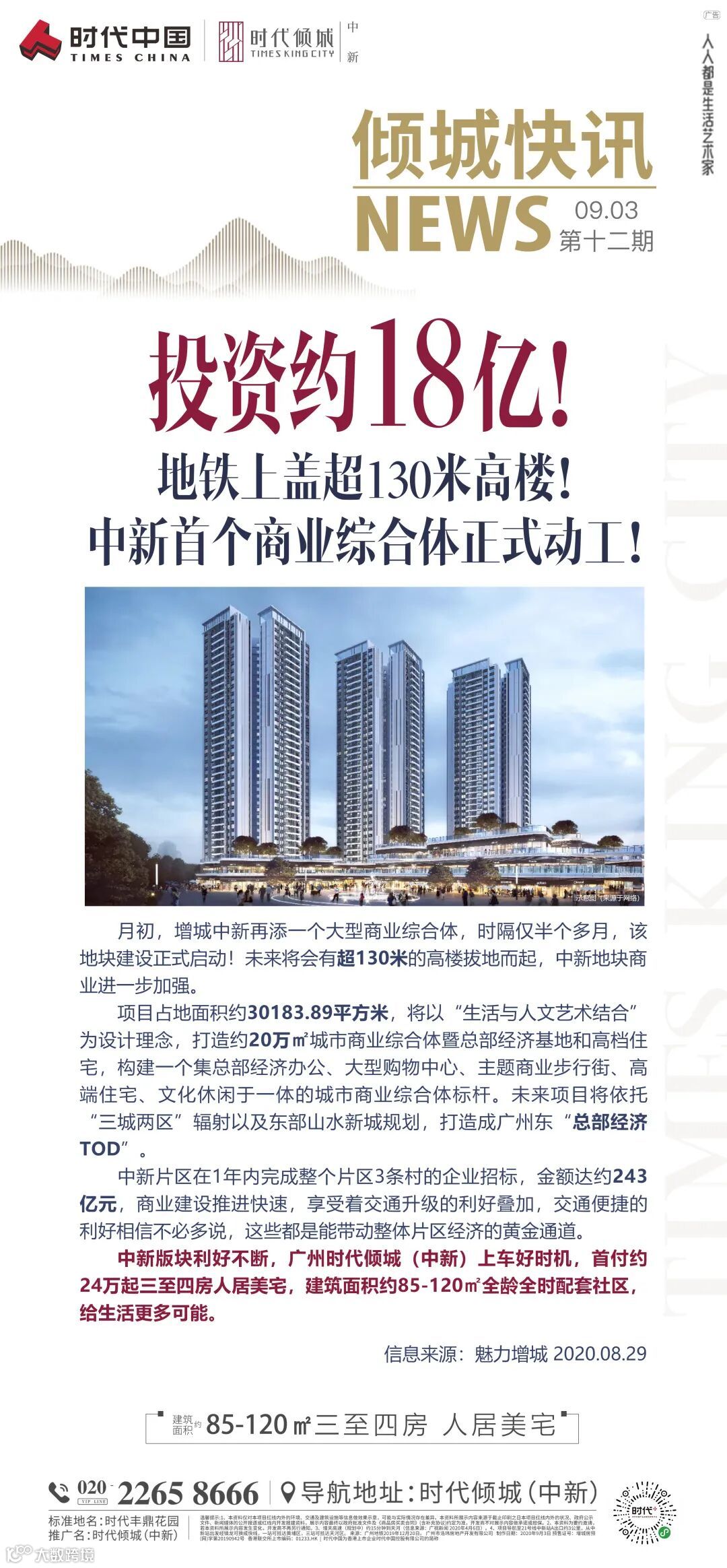9月3日,投资约18亿!地铁上盖超130米高楼!中新首个商业综合体正式动工!未来项目将依托“三城两区”辐射以及东部山水新城规划,打造成广州东总部经济“TOD”!