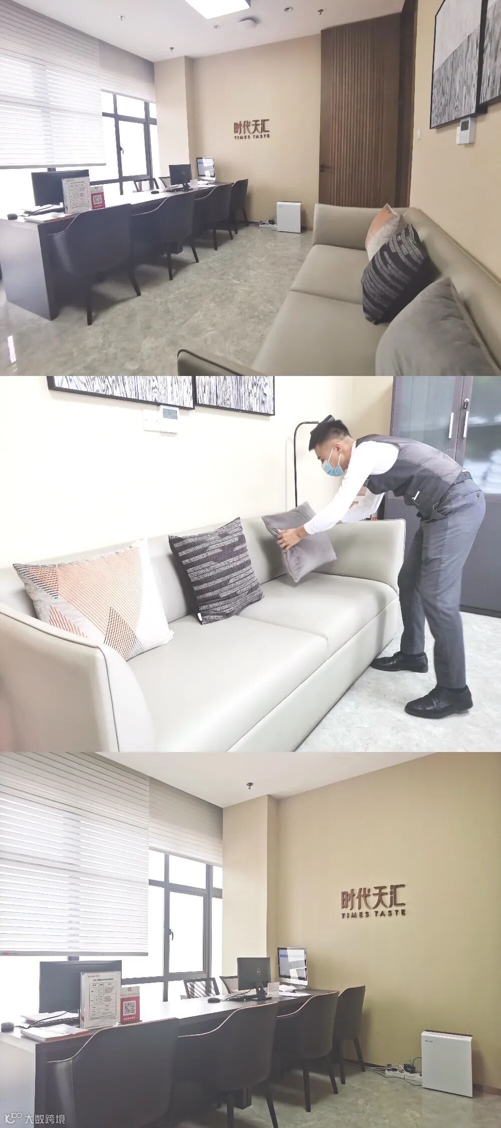 时代印记(广州)营销部及时将签约室桌面物品整理归位,提升视觉舒适度,定期保养绿植,使室内绿化生机盎然。时代倾城(中新)营销部重新整理签约流程台卡与律师事务所二维码台卡,让客户全面了解整个签约流程,提高客户签约的满意度。时代天汇(增城)营销部将靠枕进行清洁消毒,清理杂物并摆放整齐。时代云港(花都)营销部将沙发、桌椅整理好,并摆放好调查签约满意度的二维码台卡,以便业主提供意见。时代名著(增城)营销部对签约室进行了全面清理。时代风华(增城)营销部整理了桌面指示牌,并对签约室进行全面清洁。