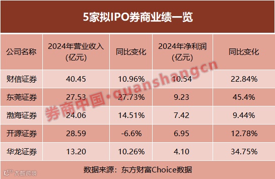 IPO排队券商2024年营收和净利润增幅最大的是东莞证券。