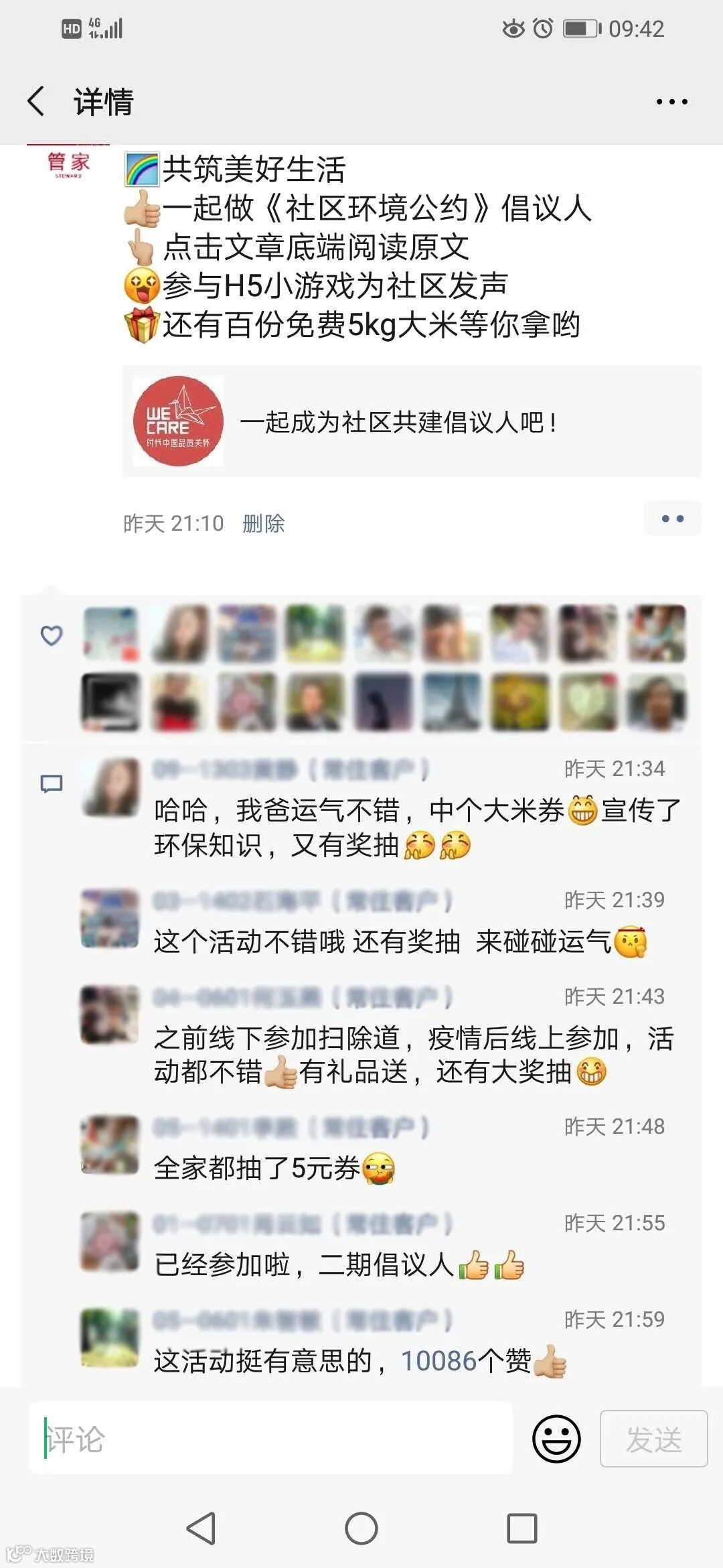 不管是维护公共设施、呵护花草树木、还是保持社区整洁、践行垃圾分类、不高空抛物。环境公约的签署不是空话,这些是每天都在身边发生的小事,需要你我共同去践行,共建社区的美好生活。
