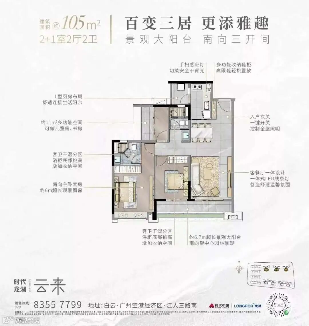 时代龙湖·云来之城由时代中国与龙湖集团联袂而成。双品牌开发商,强强联袂的大师作品,高颜值、质感,自带美学基因。