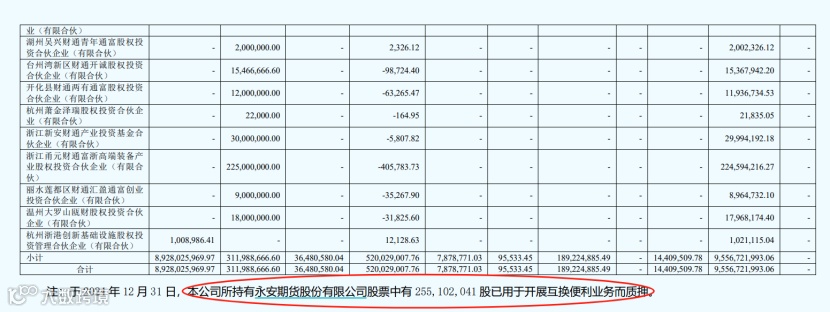 财通证券称,于2024年12月31日,本公司所持有永安期货股份有限公司股票中有2.55亿股已用于开展互换便利业务而质押。
