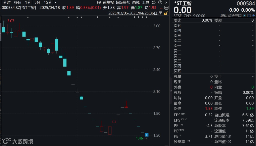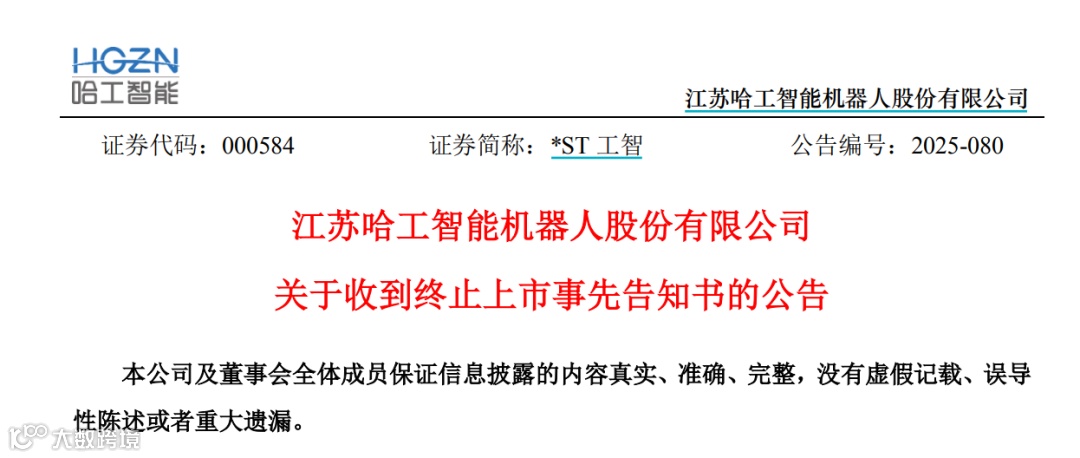 5月5日晚,*ST工智(000584)公告,已收到深交所送达的《终止上市事先告知书》,深交所决定终止公司股票上市交易。
