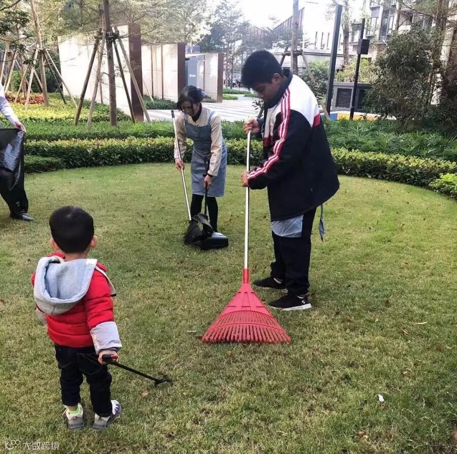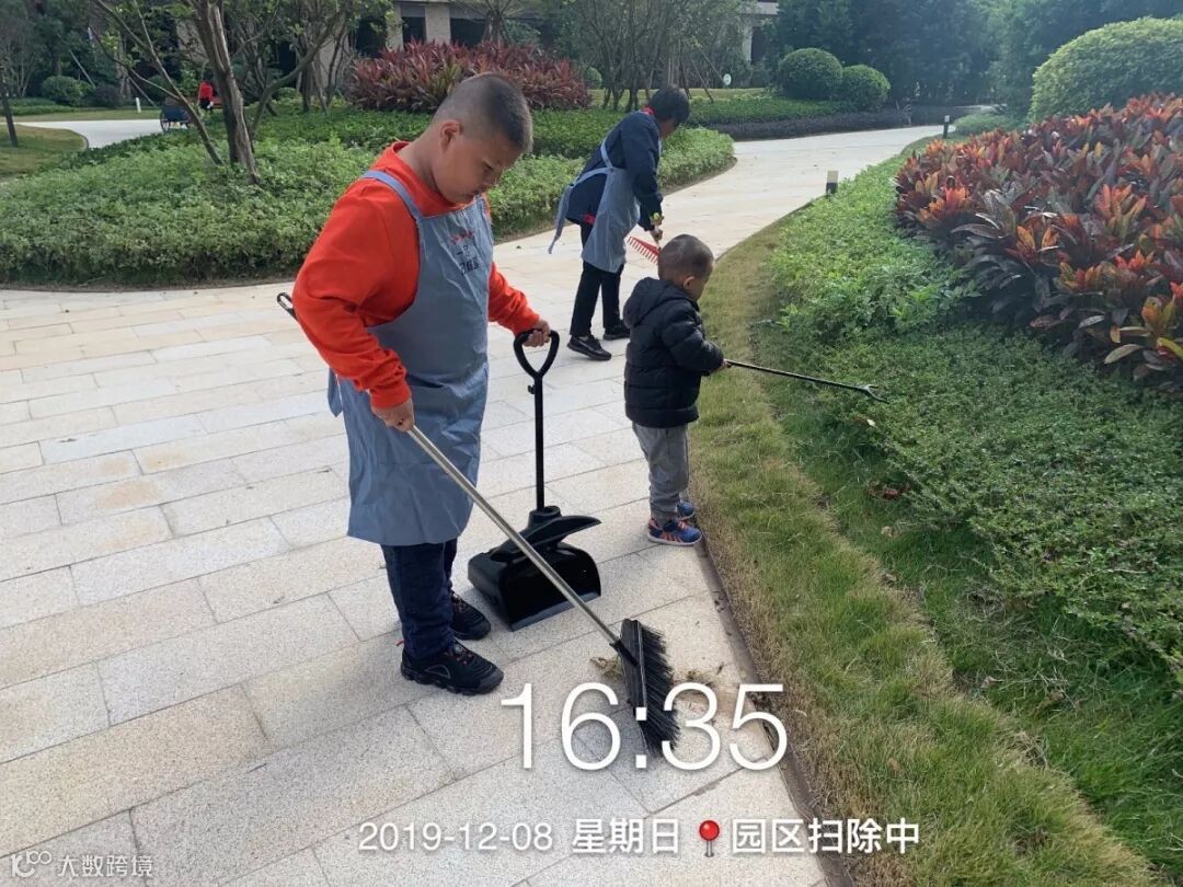 这次的小业主表现依然优秀,前两次学习的劳动技能和垃圾分类技巧早已得心应手,小身躯爆发力十足,从日落到寒风起,不停歇的帮着大人们一起完成清扫进度。幼稚脸蛋上滑过汗水挡不住收获的喜悦。