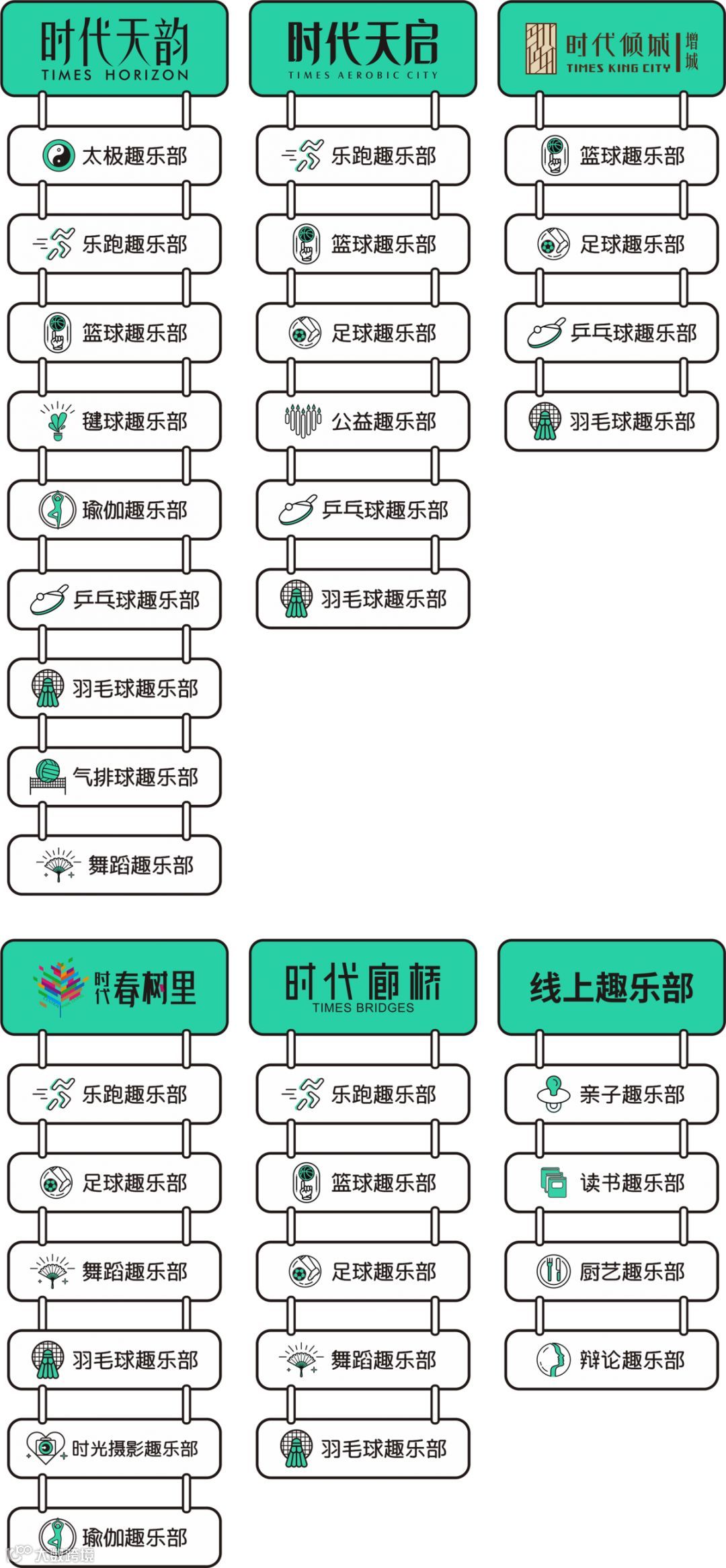 开展社区:时代天韵(广州)、时代春树里(广州)、时代廊桥(增城)、时代倾城(增城)、时代天启、时代花生、时代天朗花园、时代花园、时代玫瑰园、翠逸家园、依云小镇;