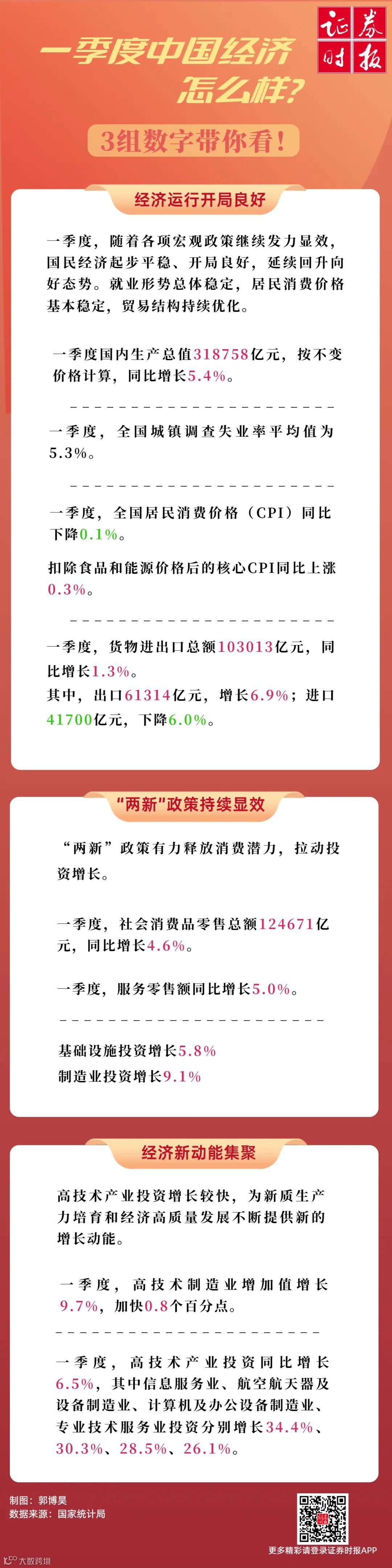 同日,国新办举行的新闻发布会上,国家统计局副局长盛来运表示,一季度我国经济延续了去年以来持续稳中向好、稳中回升的态势。我国经济基础稳、优势多、韧性强、潜力大,我们有底气、有信心、有能力应对外部挑战,实现既定发展目标。
