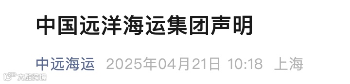 针对美国对中国海事物流及造船业301调查的歧视性决定,中国远洋海运集团发声明。