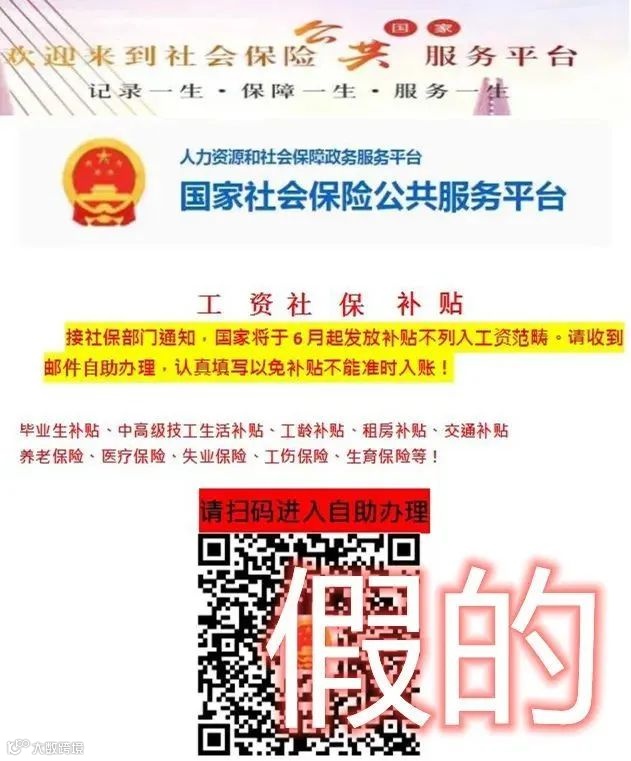 对此,人力资源社会保障部表示,从未面向普通群众发放过所谓的“五险一金补贴”,所谓通知为不实信息且涉嫌诈骗,千万别信!这类诈骗往往利用非法途径,获取群众的手机号、微信号或邮箱账号等,然后发送虚假信息,诱导群众扫描二维码或点击链接,进入虚假“官方”小程序或网站,并填写身份证、银行卡、验证码等个人信息,以达到骗取钱财的目的。一旦提交信息,补贴领不到,卡里的钱还会被盗。