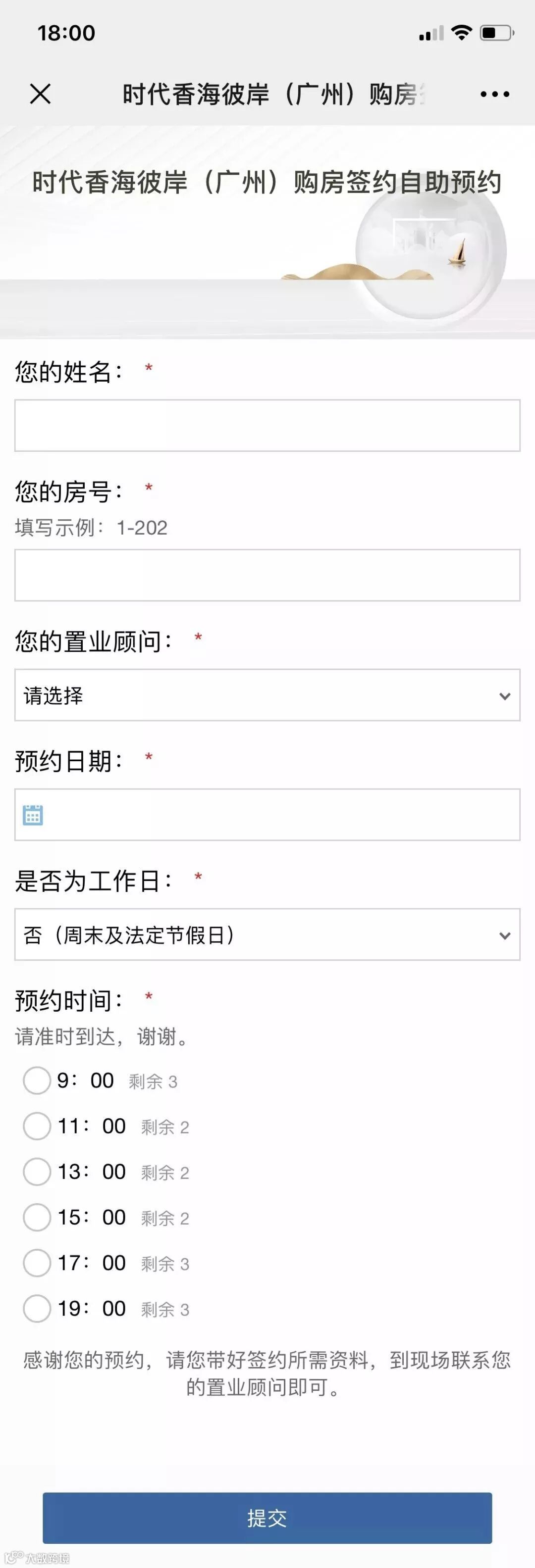 香海彼岸项目采用业主线上自助预约(或置业顾问代为预约)的模式,每个时间段仅为2-3名业主提供服务,有效避免了客户扎堆的情况,保证了服务质量,也从根本上规避了客户等候时间过长的情况。
