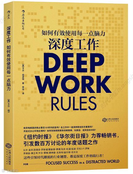 作者创立的“深度工作”概念,其含义为在无干扰的状态下进行专注的职业活动,使个人的认知能力达到极限。而正因为当前社会深度工作能力的日益稀缺,其与经济成功的关系也变得日渐紧密起来。本书的所有讨论也围绕“深度工作”而展开。第二部分则系统地传授了在日常生活中践行深度工作的具体策略,如将深度工作纳入日常工作进程、提高大脑的深度思维能力、远离社交网络等。