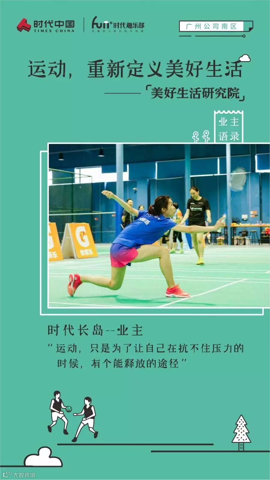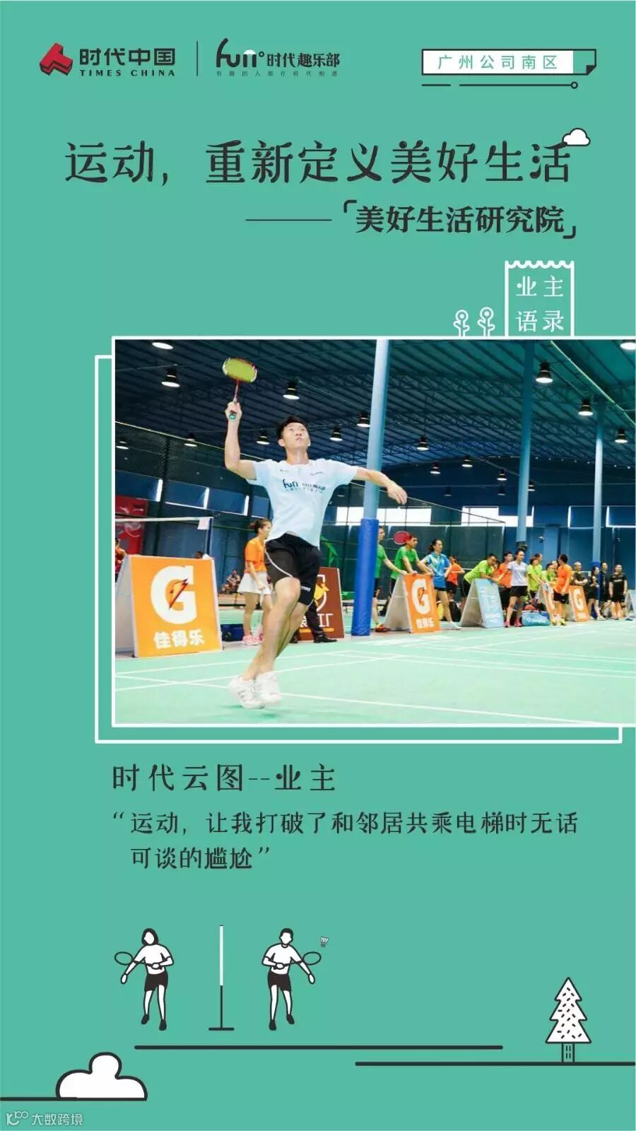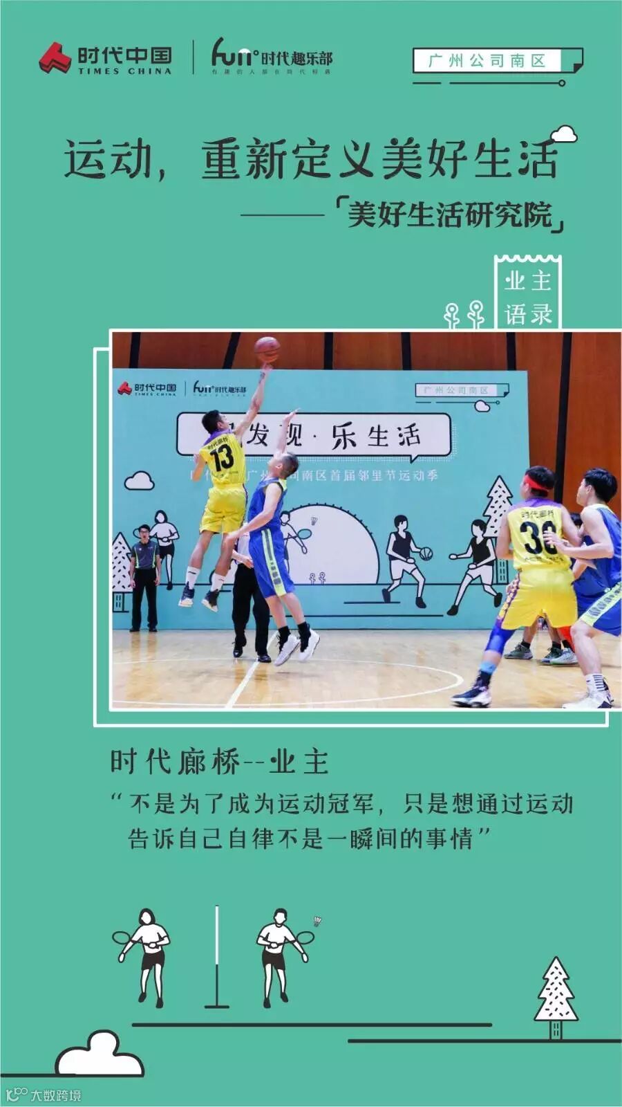作为时代趣乐部和“美好生活研究院”组织开展的第一期活动,趣乐部希望从运动出发,让业主们在享受运动激情,向美好生活迈进的同时,也为业主们搭建一个相互联络感情,促过邻里关系的平台,重新定义睦邻友好的美好生活。