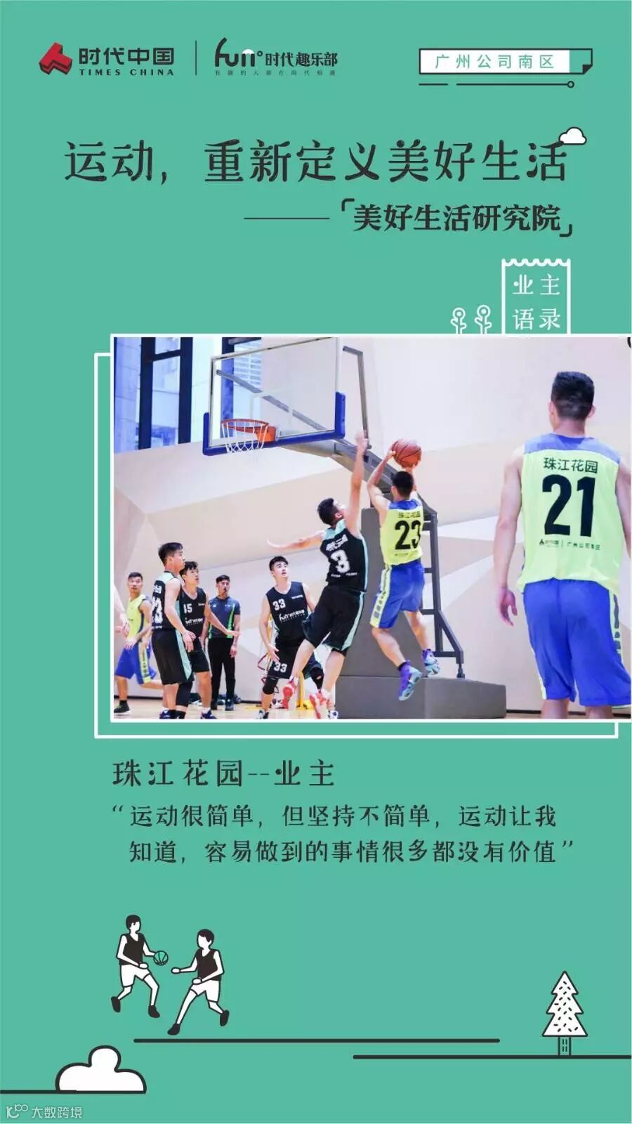 为了更好地搭建熟人社区,同时打破社区与社区之间的界限,在本届运动季中,“美好生活研究院”还特别组建了MVP战队,队员由七大社区业主投票产生,他们除了是人气MVP外,也将组成时代中国广州公司南区特别战队,这也意味着七大社区并非孤立存在的,它们是一个整体。“美好生活研究院”希望这种社区文化可以一直延续下去,让各个独立的社群形成坚固且稳定的矩阵。